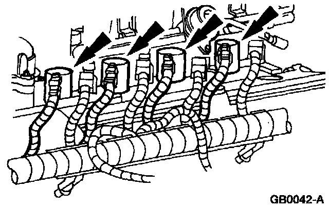 NOTE: Apply brake caliper grease to the inside of the coil boots.