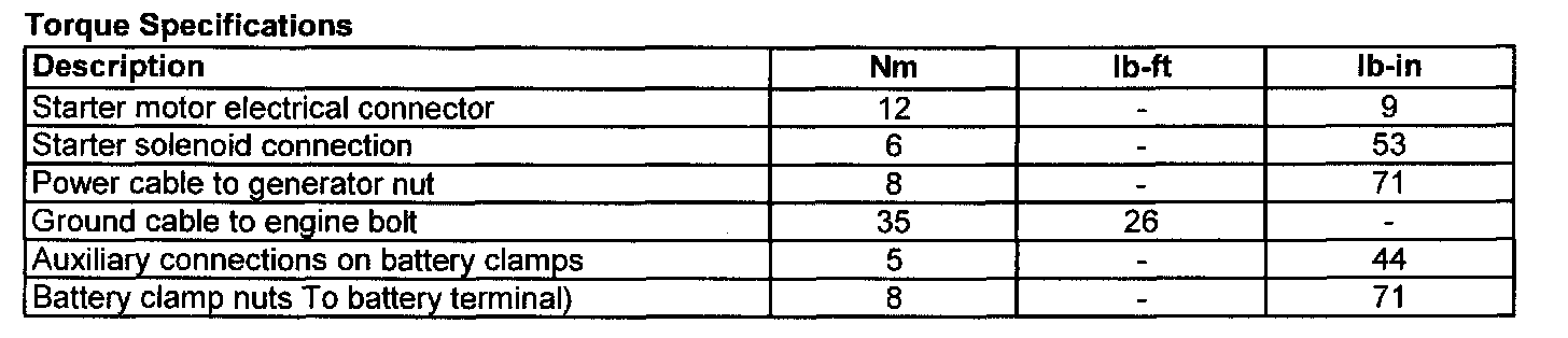 Torque Specifications: