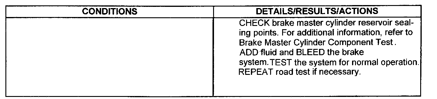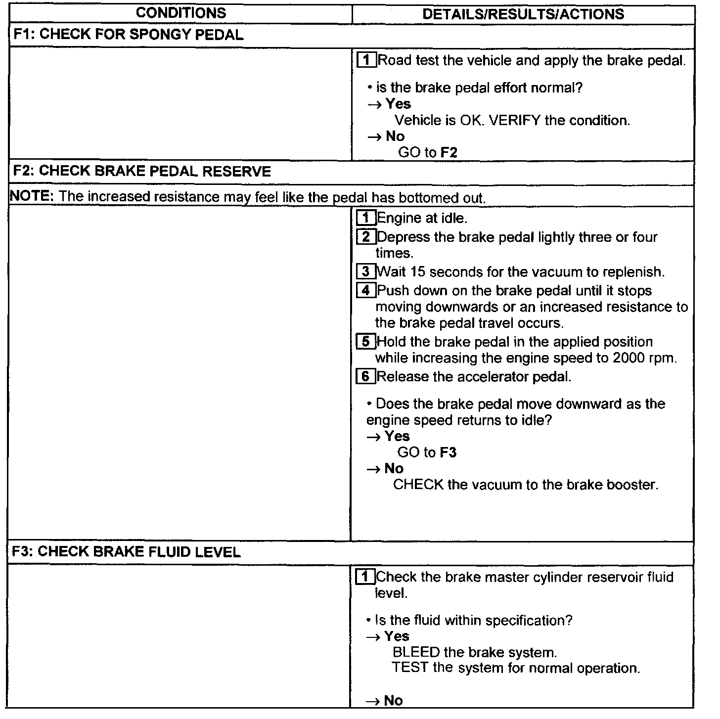 PINPOINT TEST F: THE PEDAL IS LOW OR FEELS SPONGY