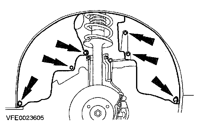 3. Remove the right-hand fender splash shield (wheel shown removed for clarity).
