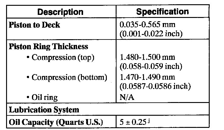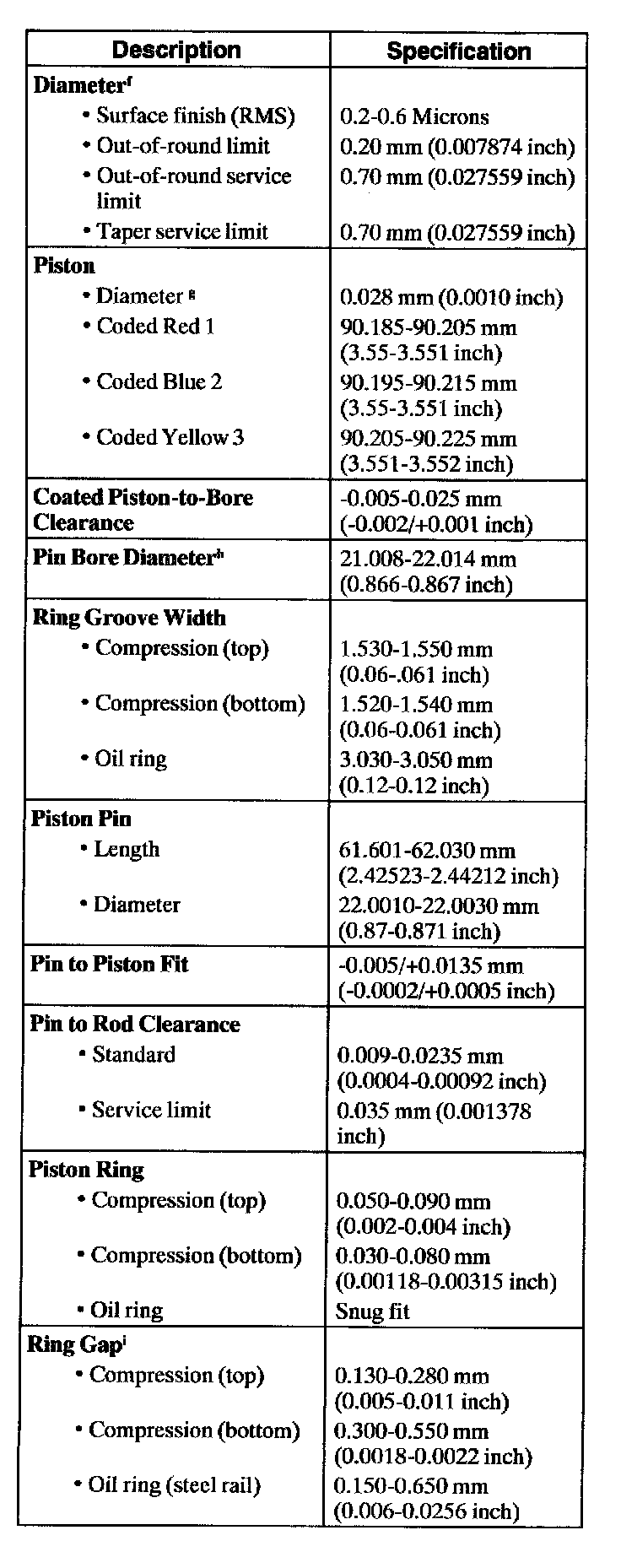 g Measured at 31.5 mm from top of block. Measured at 43 mm from top of piston, at 90 degrees to the piston pin.