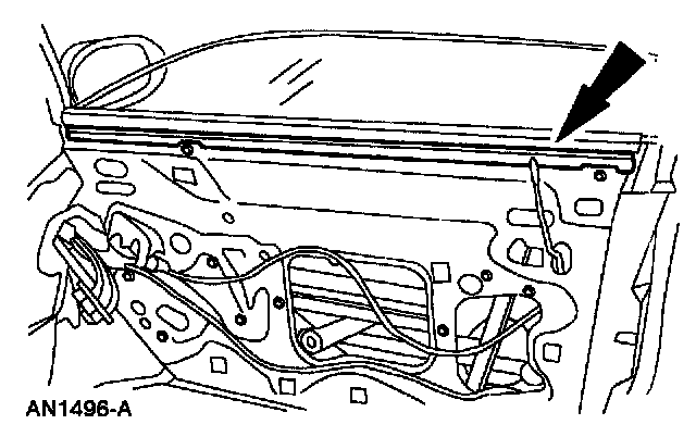 7. Tip the front of the glass down to clear the door filler and remove the door window glass.