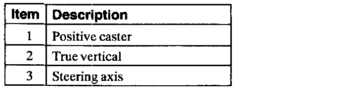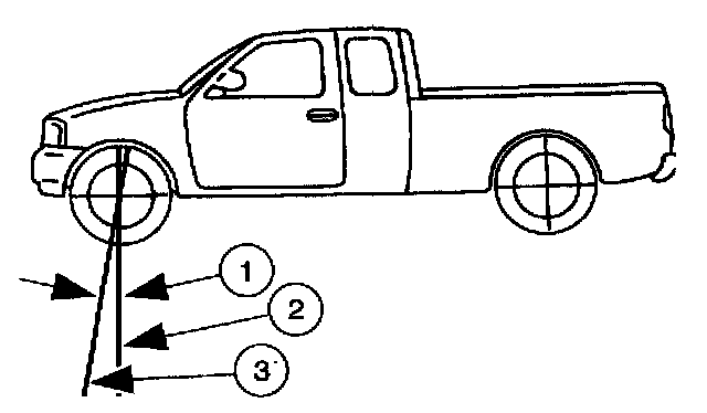 Caster is the deviation from vertical of an imaginary line drawn through the ball joints when viewed from the side. The caster specifications will give the vehicle the best directional stability characteristics when loaded and driven. The caster setting is not related to tire wear.