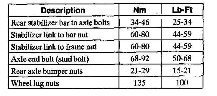 Torque Specifications