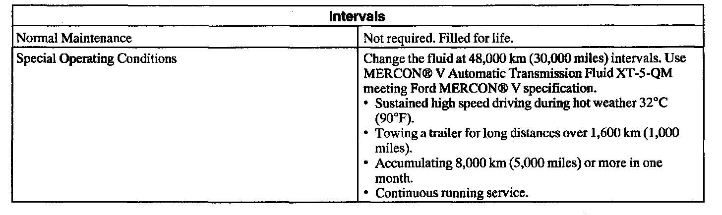 CAUTION: Use only MERCON V Automatic Transmission Fluid XT-5-QM meeting Ford MERCON V specification. Use of any other fluids can result in a transmission malfunction or failure.