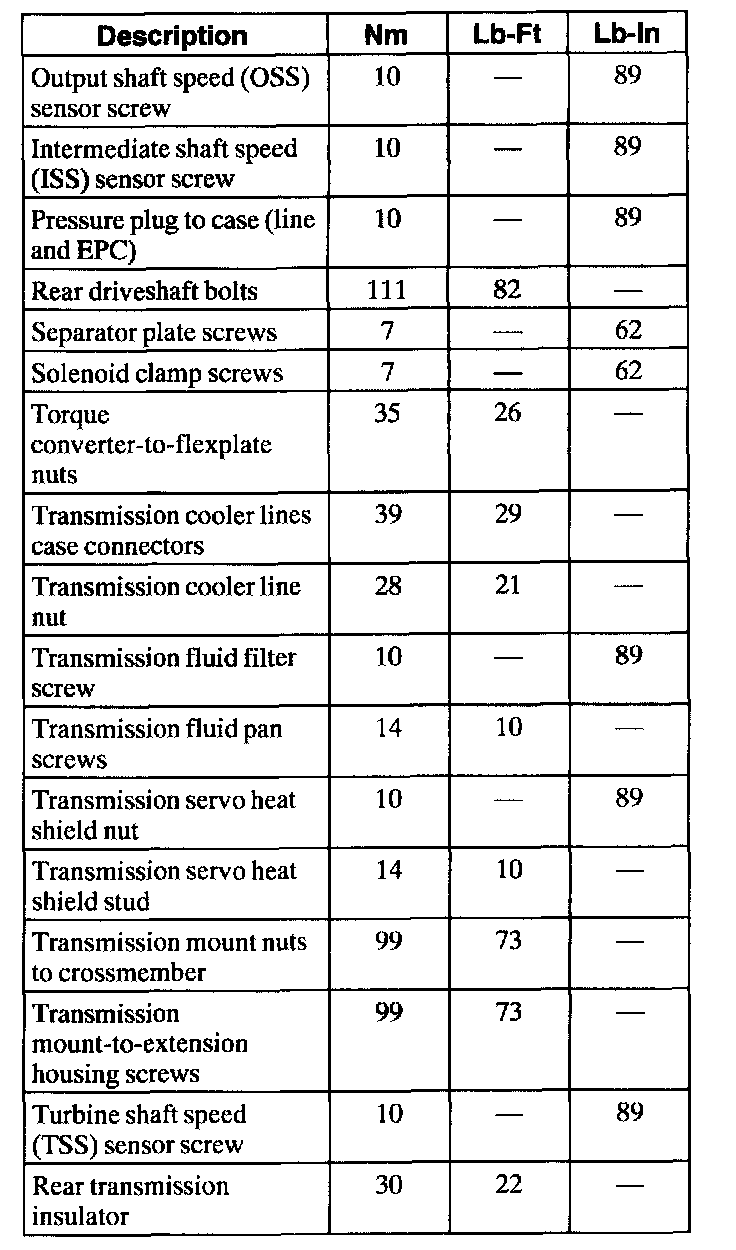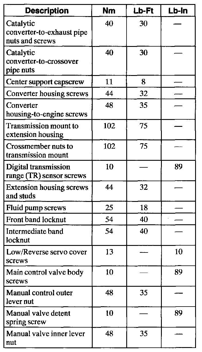 Torque Specifications