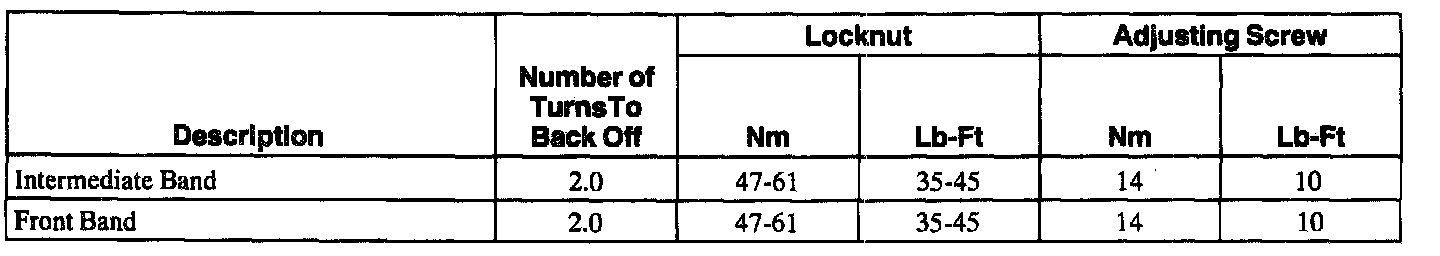 Band Adjustment And Torque Chart