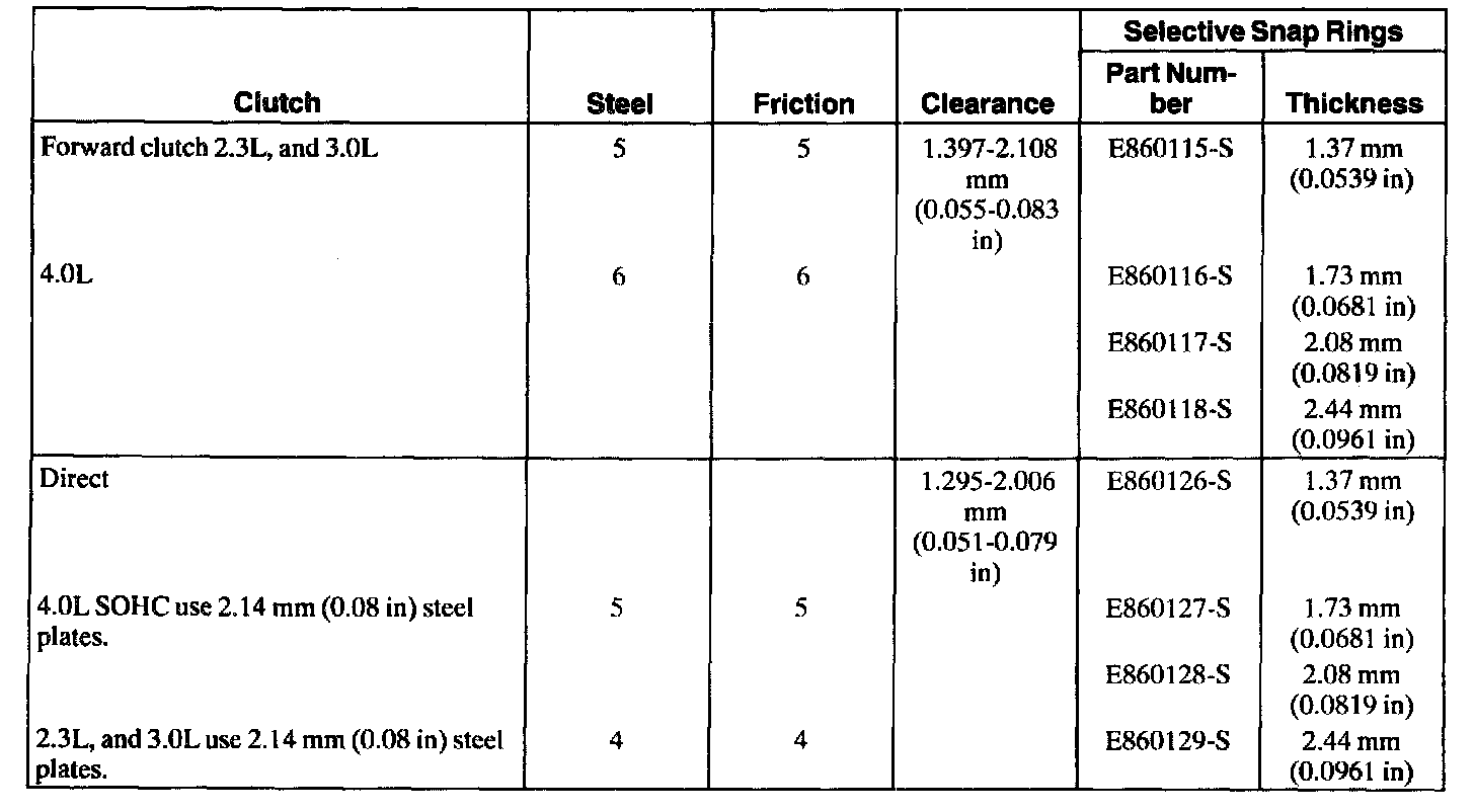 Clutch Plate Usage And Clearance Specifications