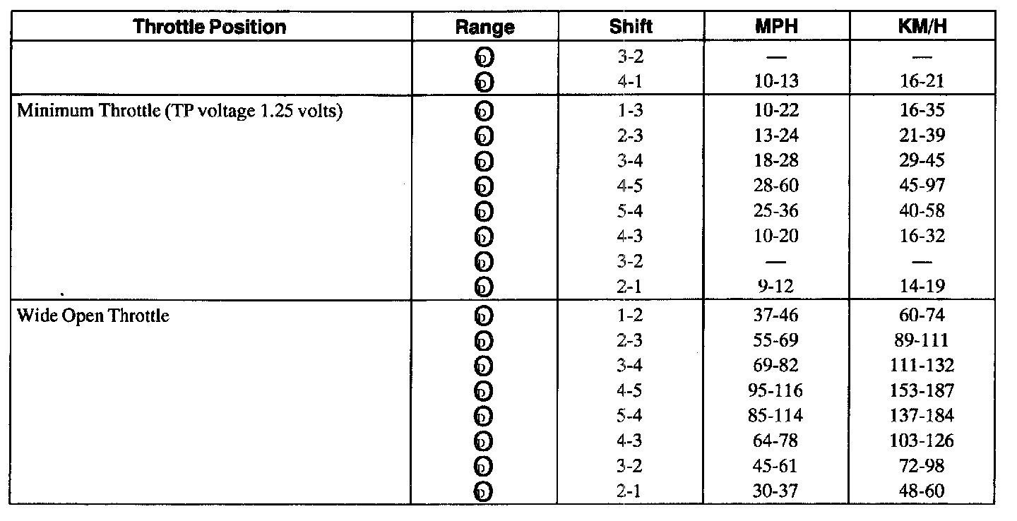 NOTE: Shift speed ranges are approximate for all applications.
