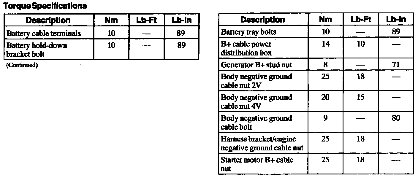 Torque Specifications: