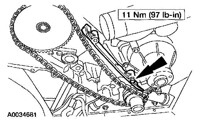 13. Install the RH timing chain tensioner arm.