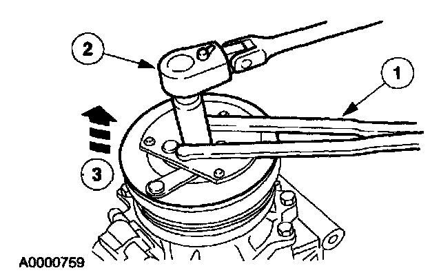 1 Hold the A/C clutch hub.