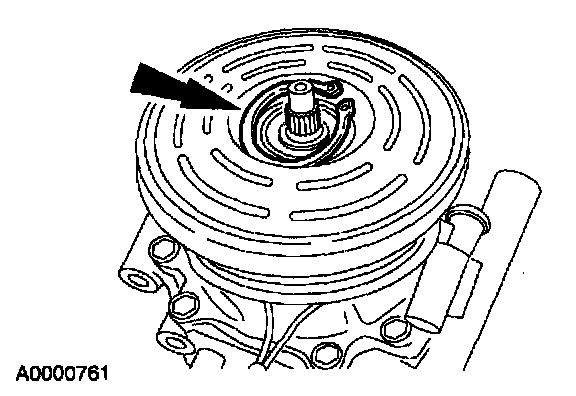 10. Measure and adjust the clutch air gap by removing or adding A/C clutch hub spacers.