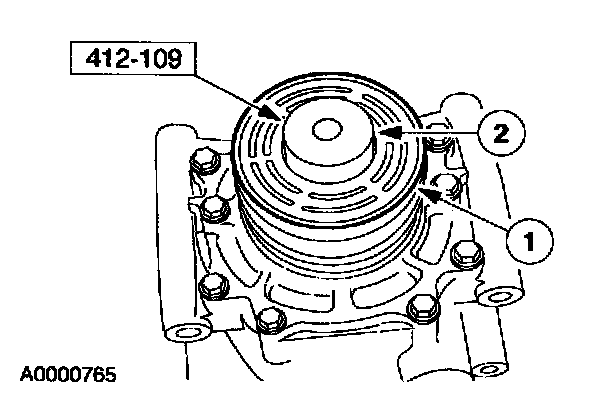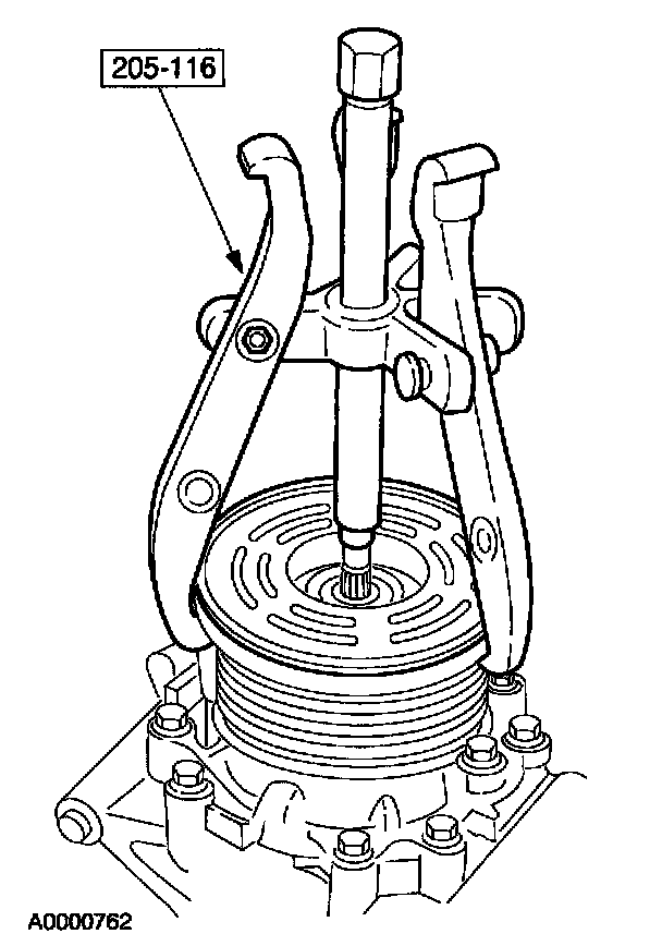 NOTE: The A/C clutch bearing and pulley is a slip fit on the compressor. If correctly aligned, it should slip on easily. If difficulty is encountered, install using the special tool.