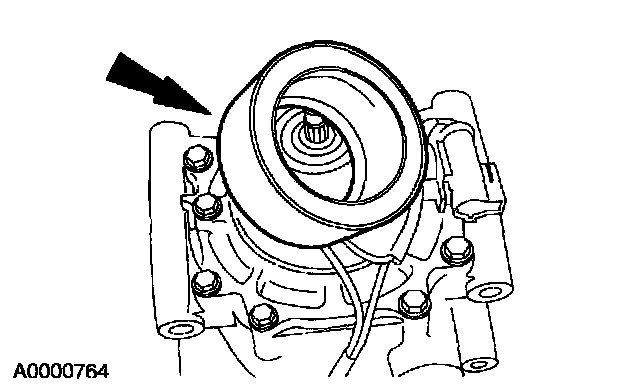1. Clean the A/C clutch field coil and pulley mounting surfaces.