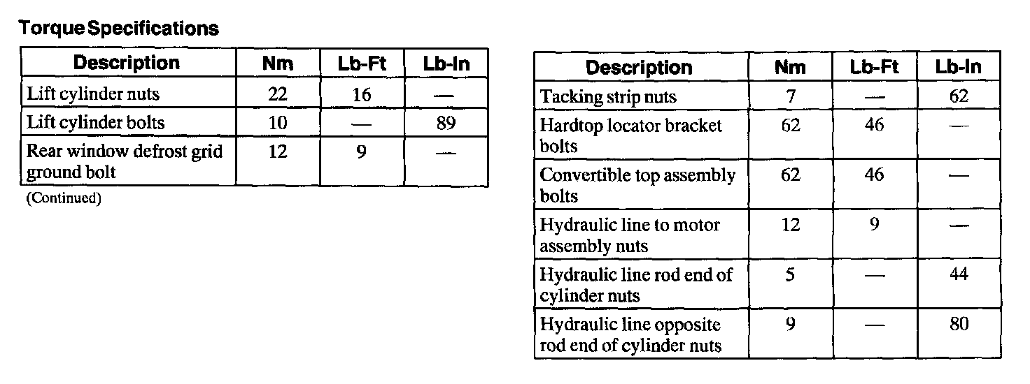 Torque Specifications: