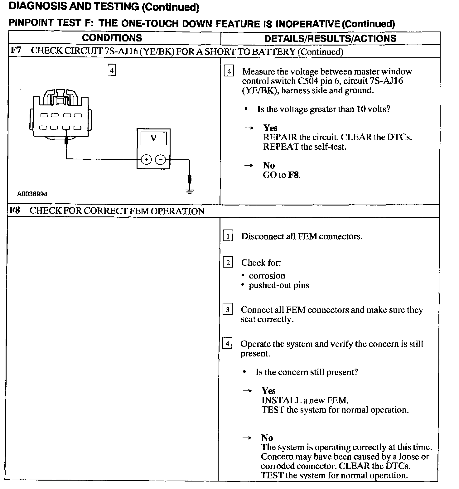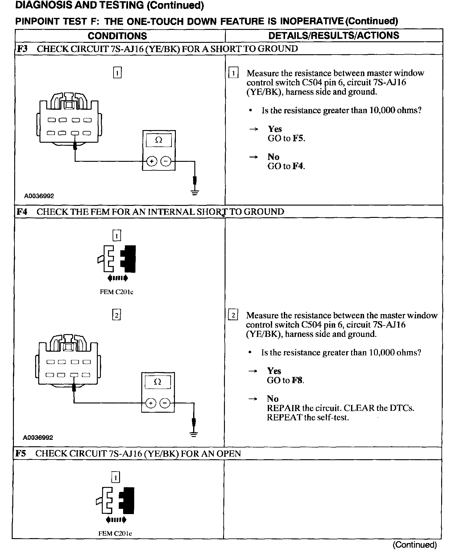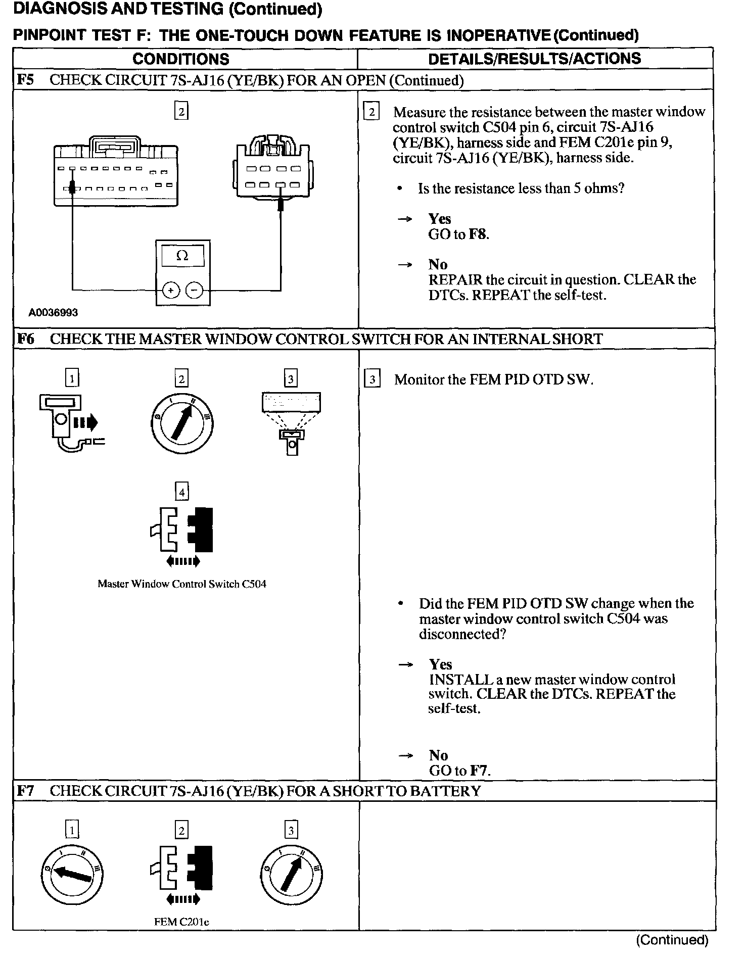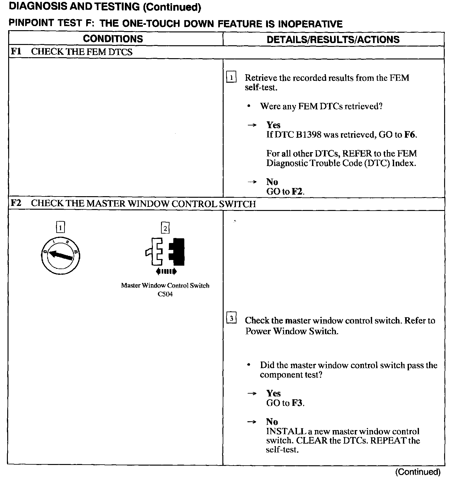 Test F: One Touch Down Feature Is Inoperative