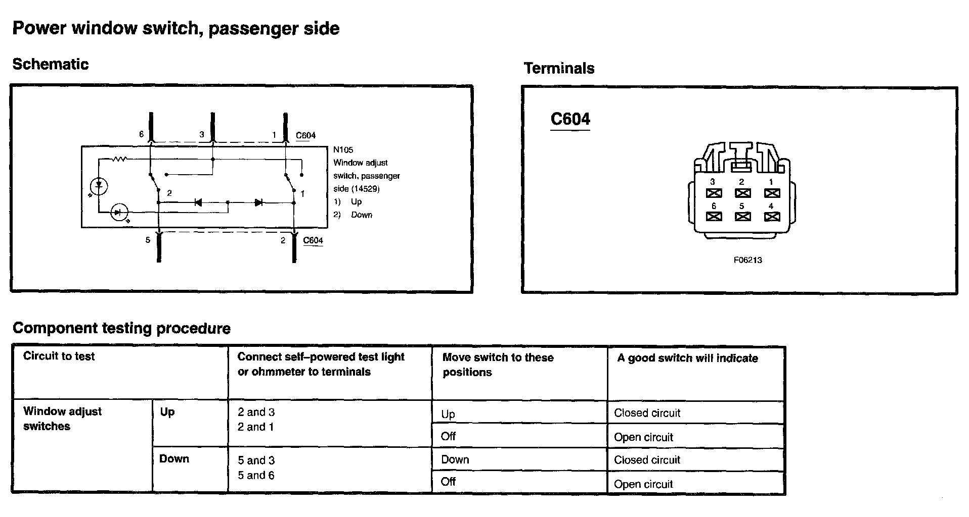 Power Window Switch, Passenger Side:
