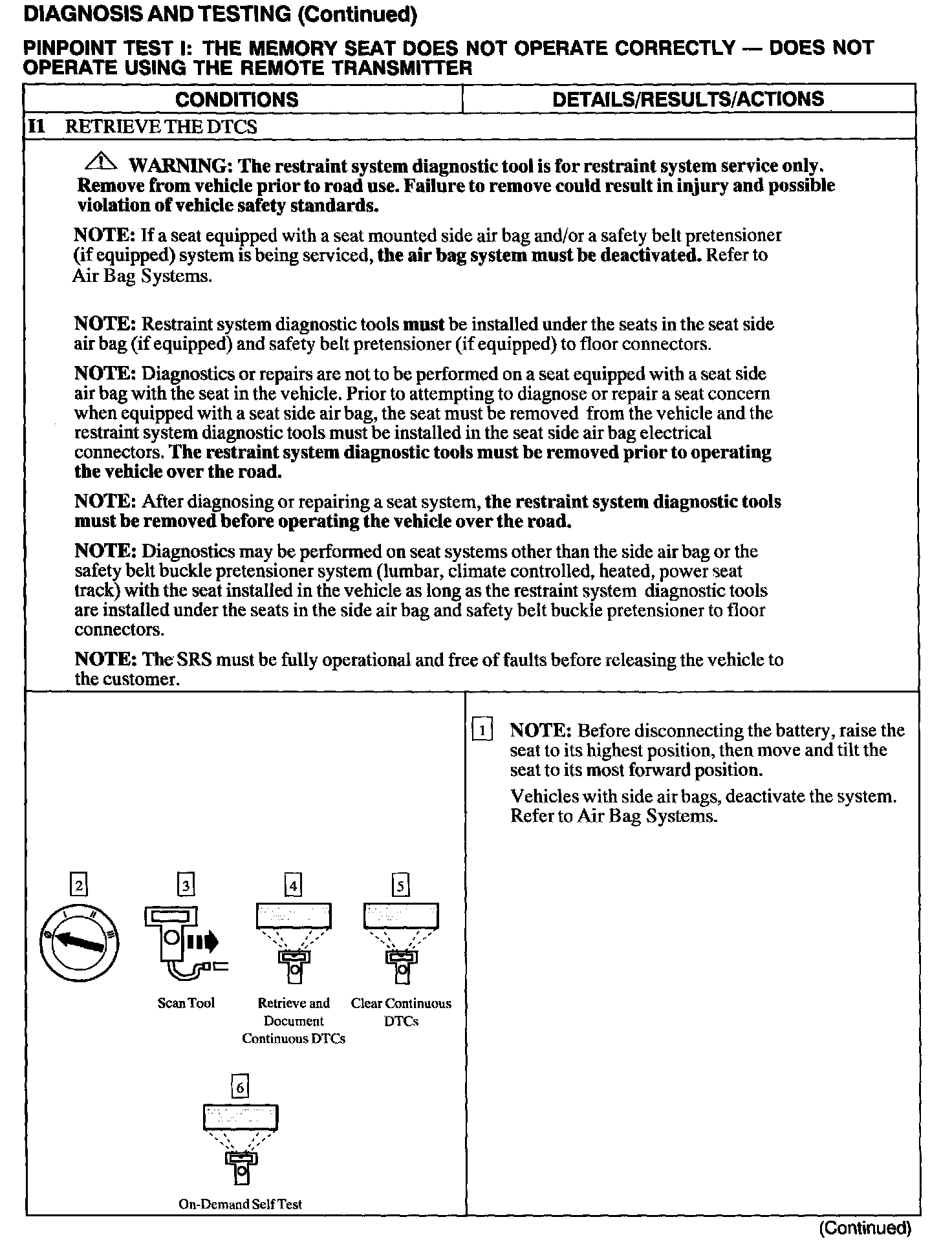 Test I: Memory Seat Does Not Operate Correctly - Does Not Operate Using The Remote Transmitter
