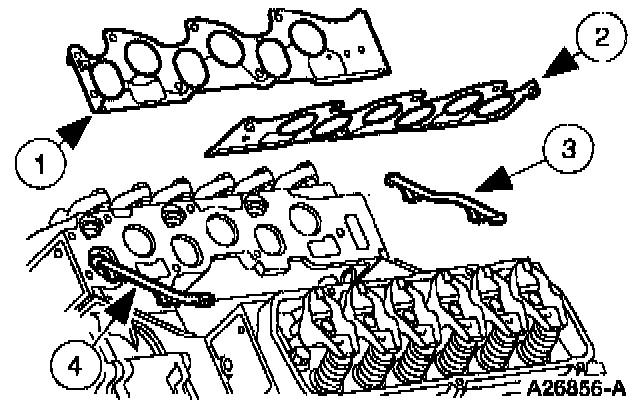 CAUTION: During engine repair procedures, cleanliness is extremely important. Any foreign material, including any material created while cleaning gasket surfaces, that enters the oil passages, coolant passages or the oil pan can cause engine failure.