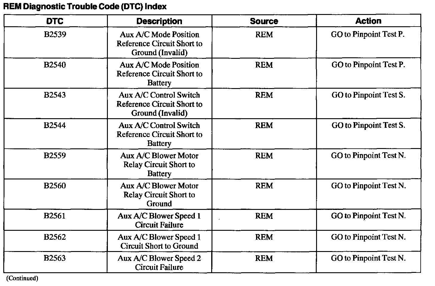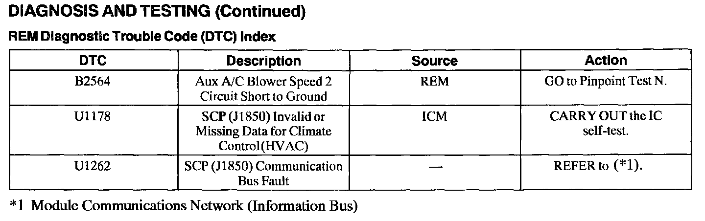 Rear Electronic Module (REM) Diagnostic Trouble Code Index