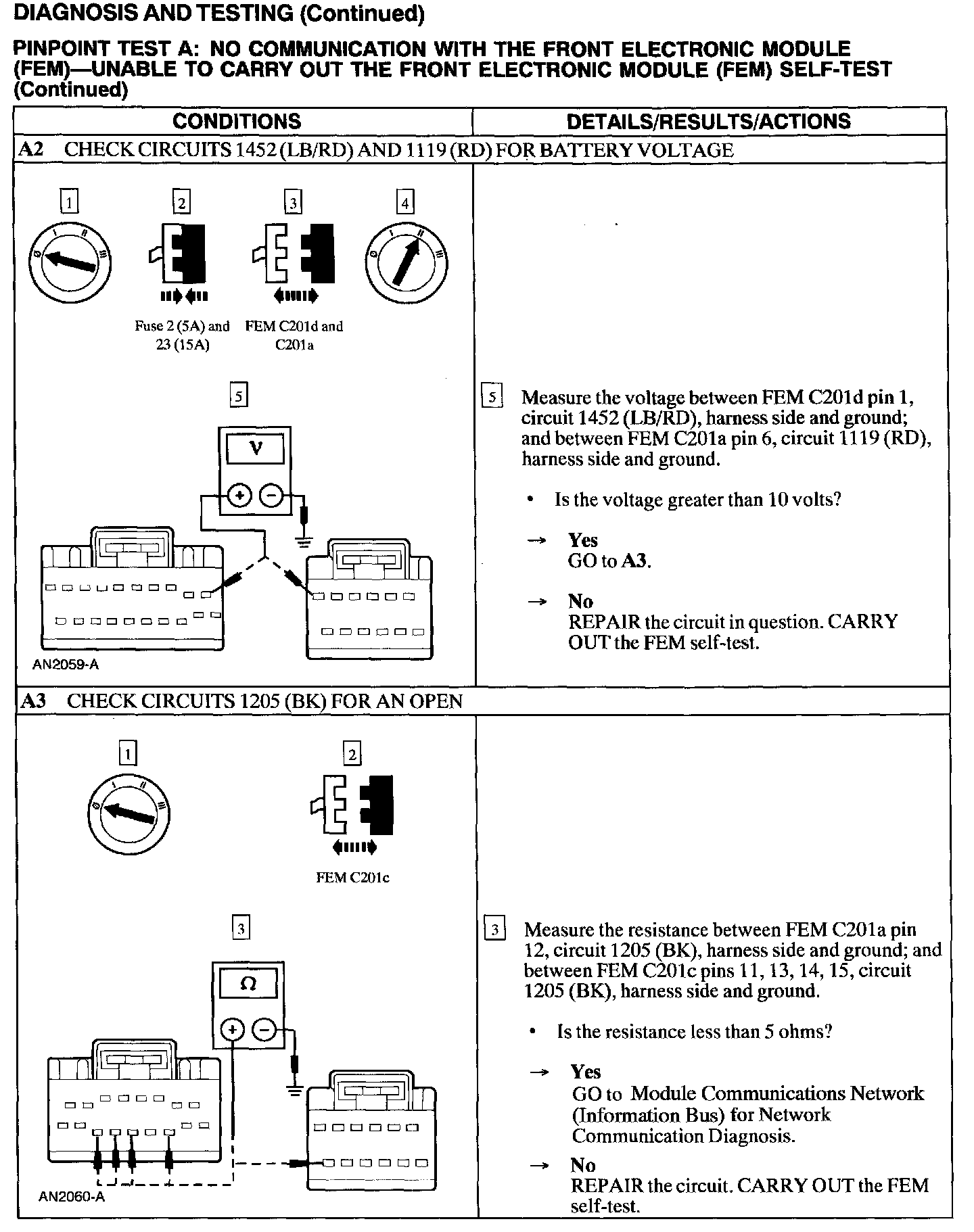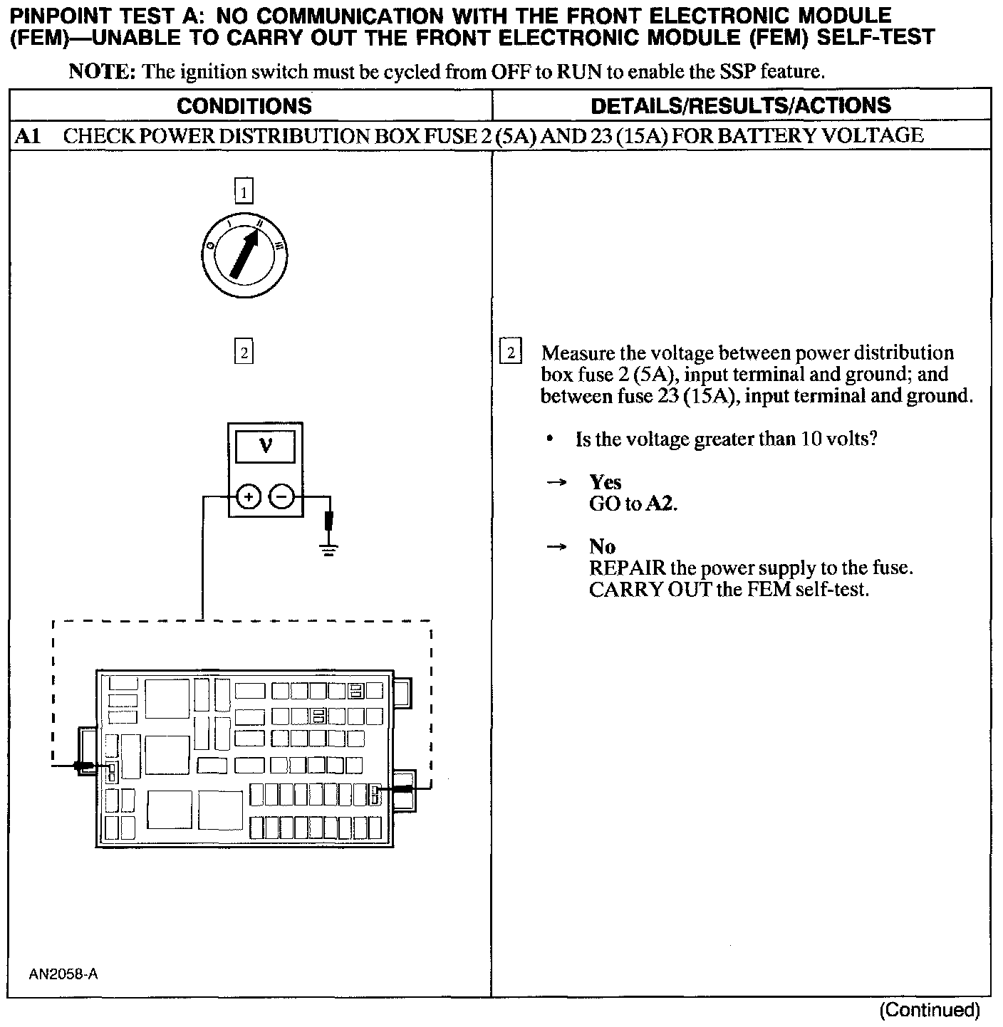 Test A: No Comm., From the Front Electronic Module Self-Test