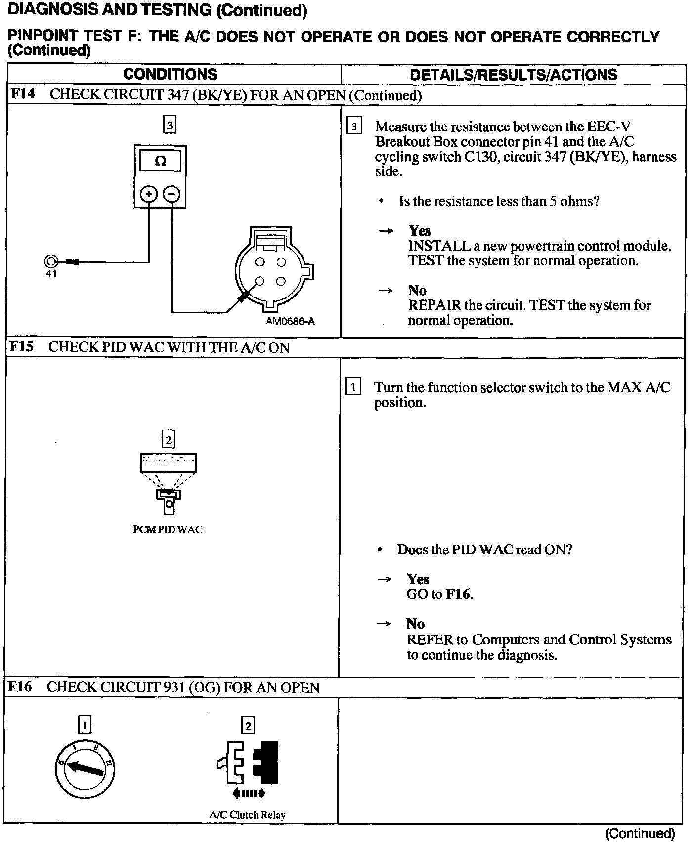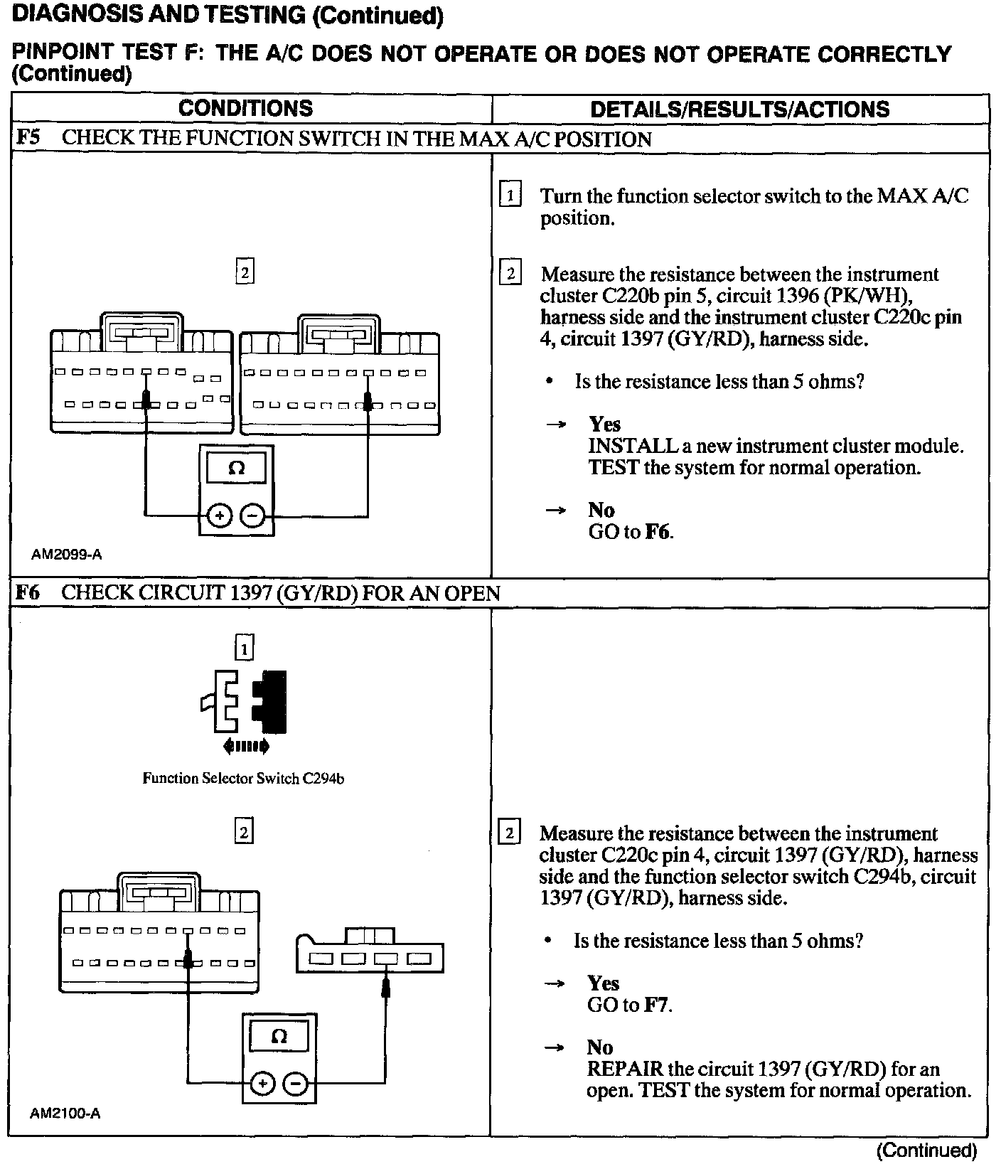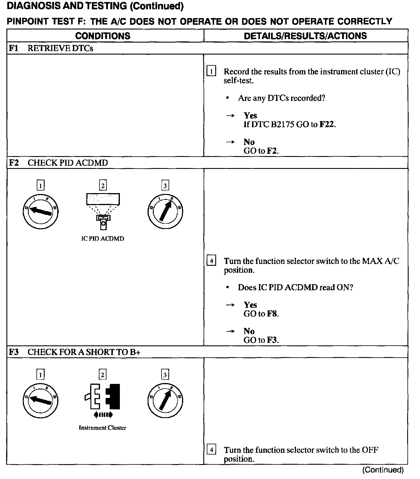 Test F: A/C Does Not Operate or Does Not Operate Correctly