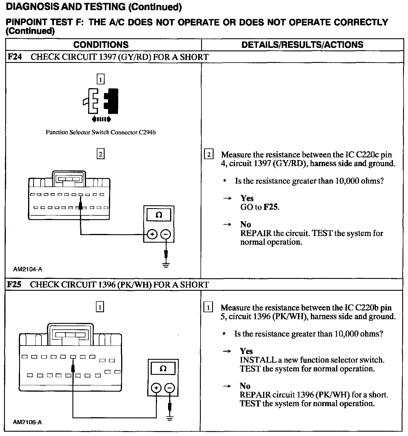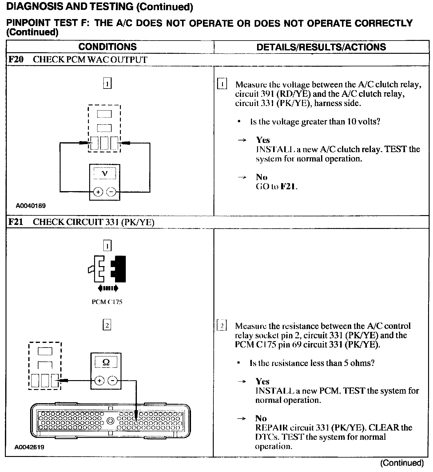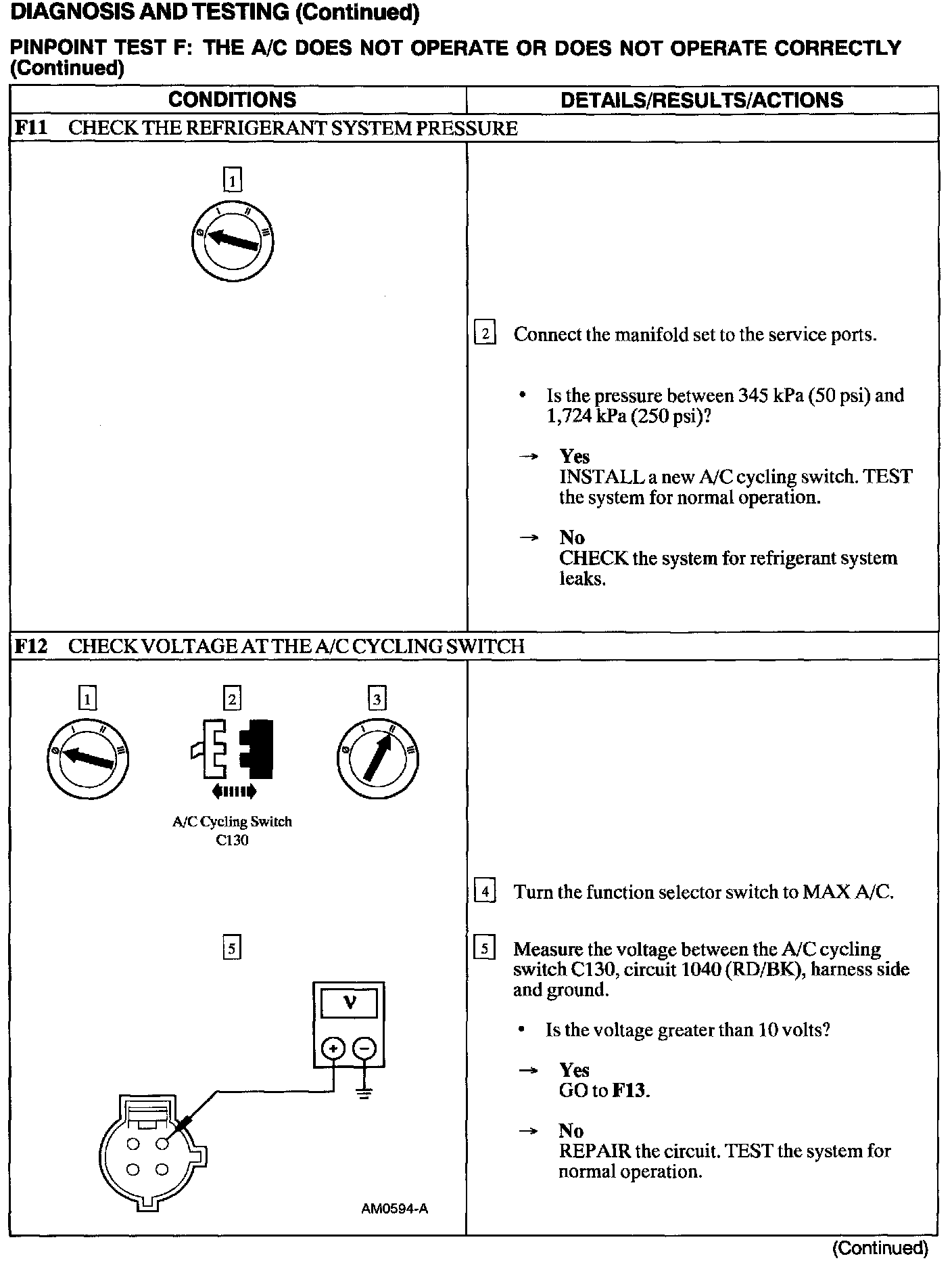 Test F: A/C Does Not Operate or Does Not Operate Correctly