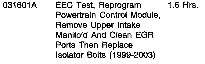 2. (ALL 1999-2003). Reprogram the PCM (Powertrain Control Module) with the latest calibration, WDS B26.2 release or later. Do not replace the PCM. Reset the keep alive memory.