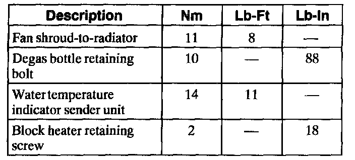 Torque Specifications