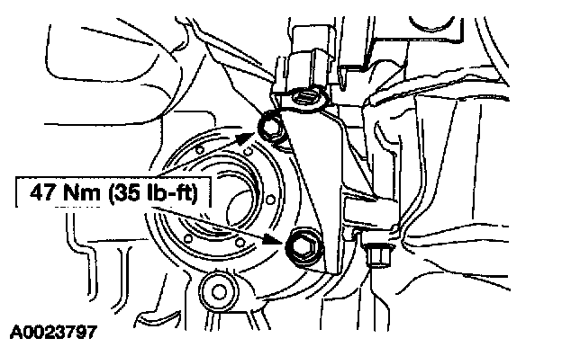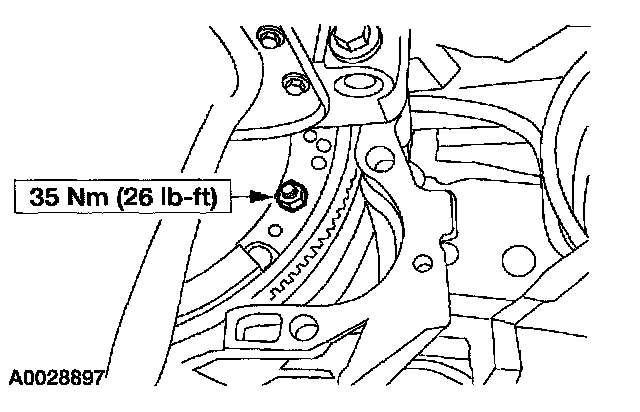 14. Install four new torque converter nuts.