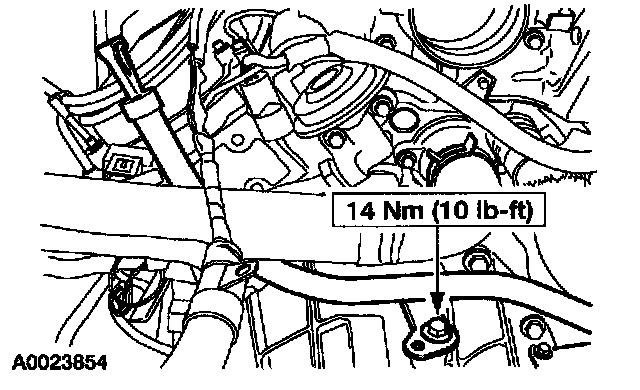 44. Install the upper transaxle fluid filler tube and bolt.