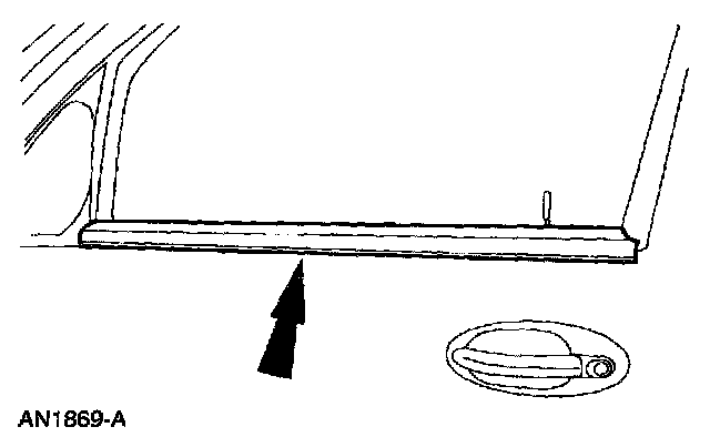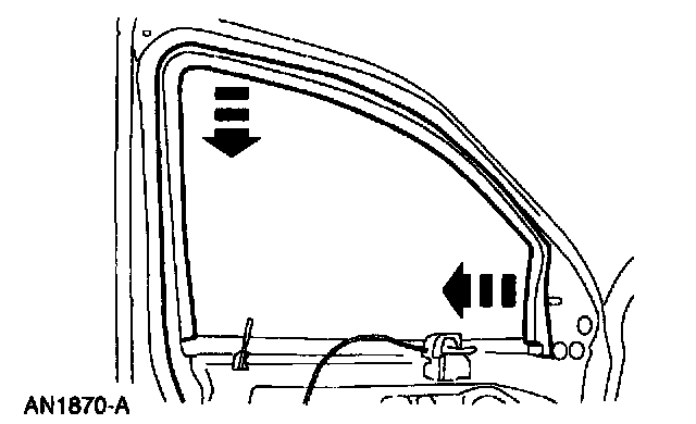 NOTE: The door glass top run is partially contained within the front door and must be routed out of the door panel for removal.