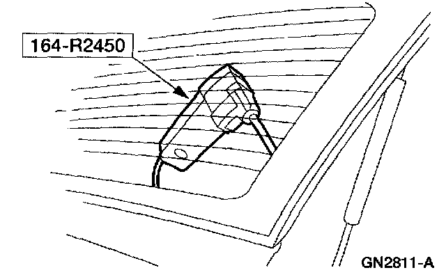 1. Dry-fit the new liftgate window glass by centering it side to side and by adjusting the setting blocks (if equipped) to get the correct position top to bottom. Make alignment marks with tape or non-staining grease pencil on both the glass and the vehicle body.