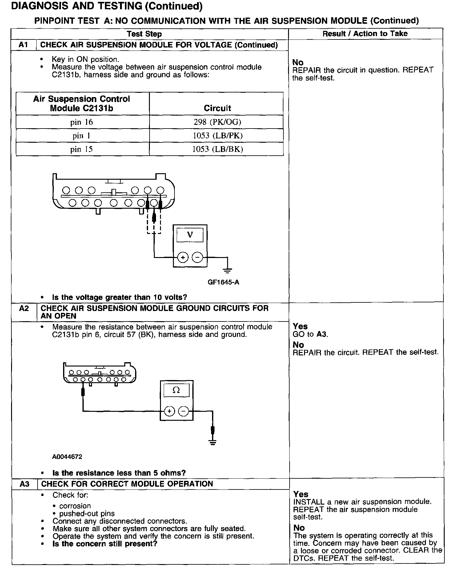 PINPOINT TEST A: NO COMMUNICATION WITH THE AIR SUSPENSION MODULE