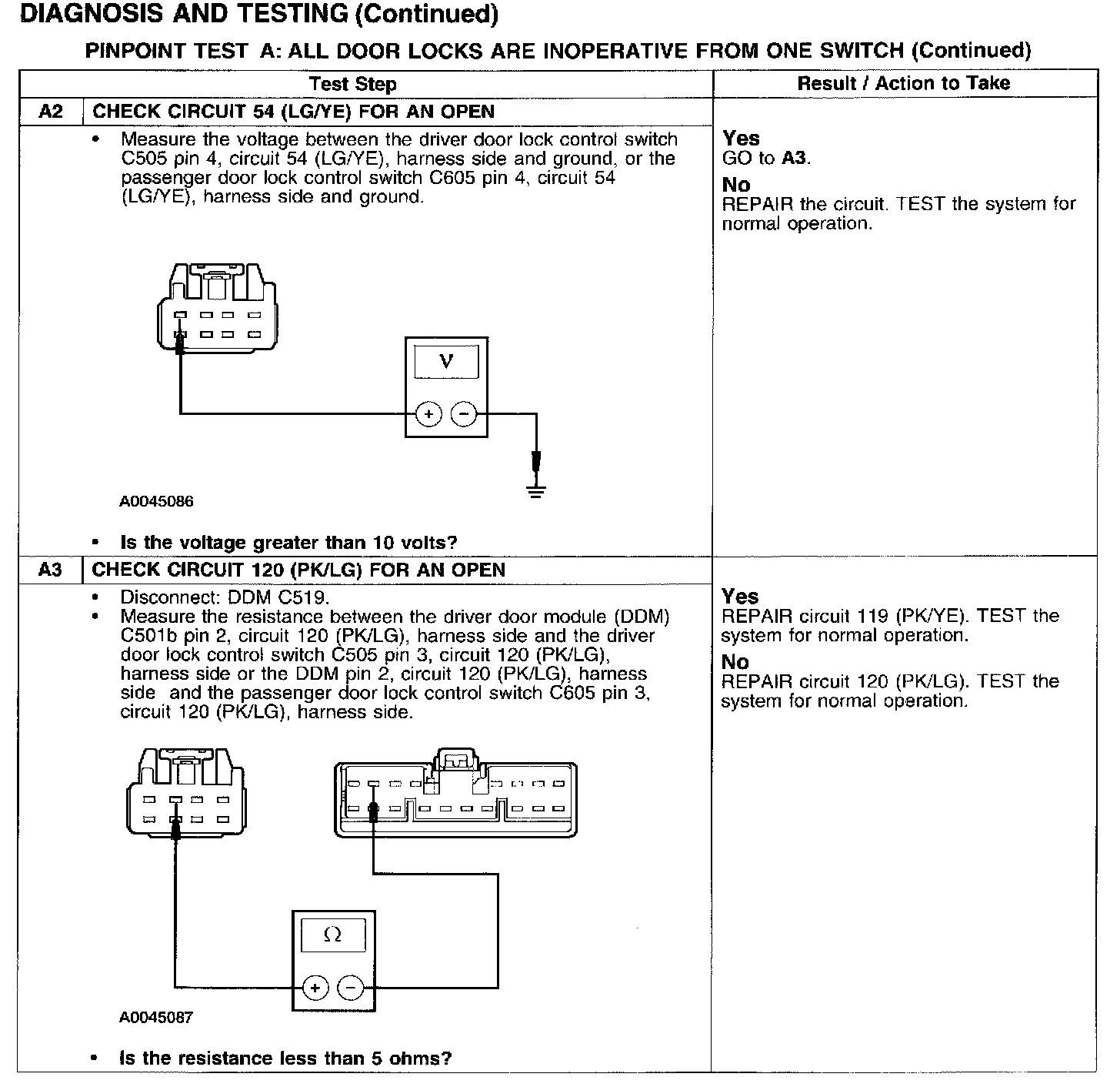 PINPOINT TEST A: ALL DOOR LOCKS ARE INOPERATIVE FROM ONE SWITCH