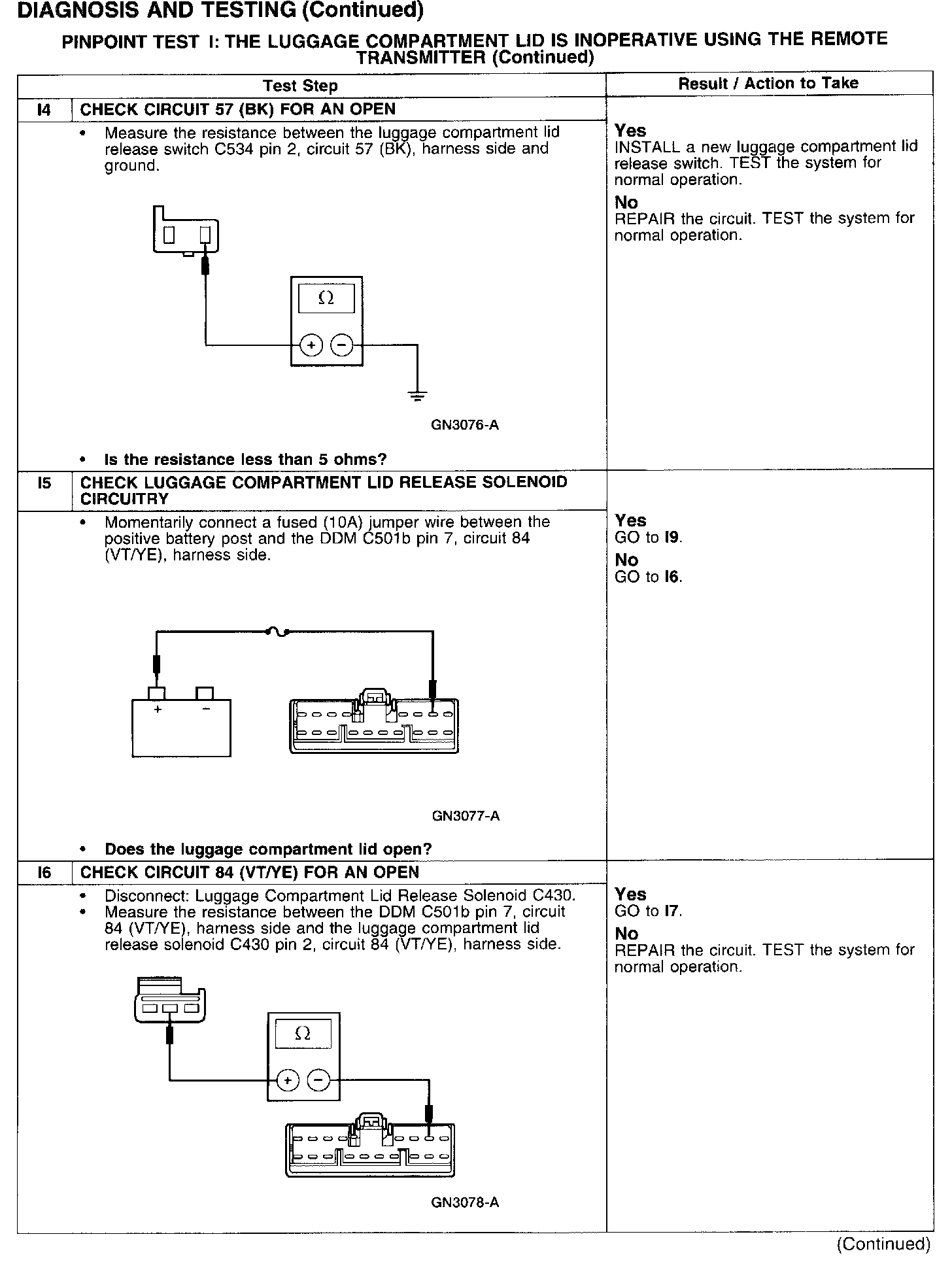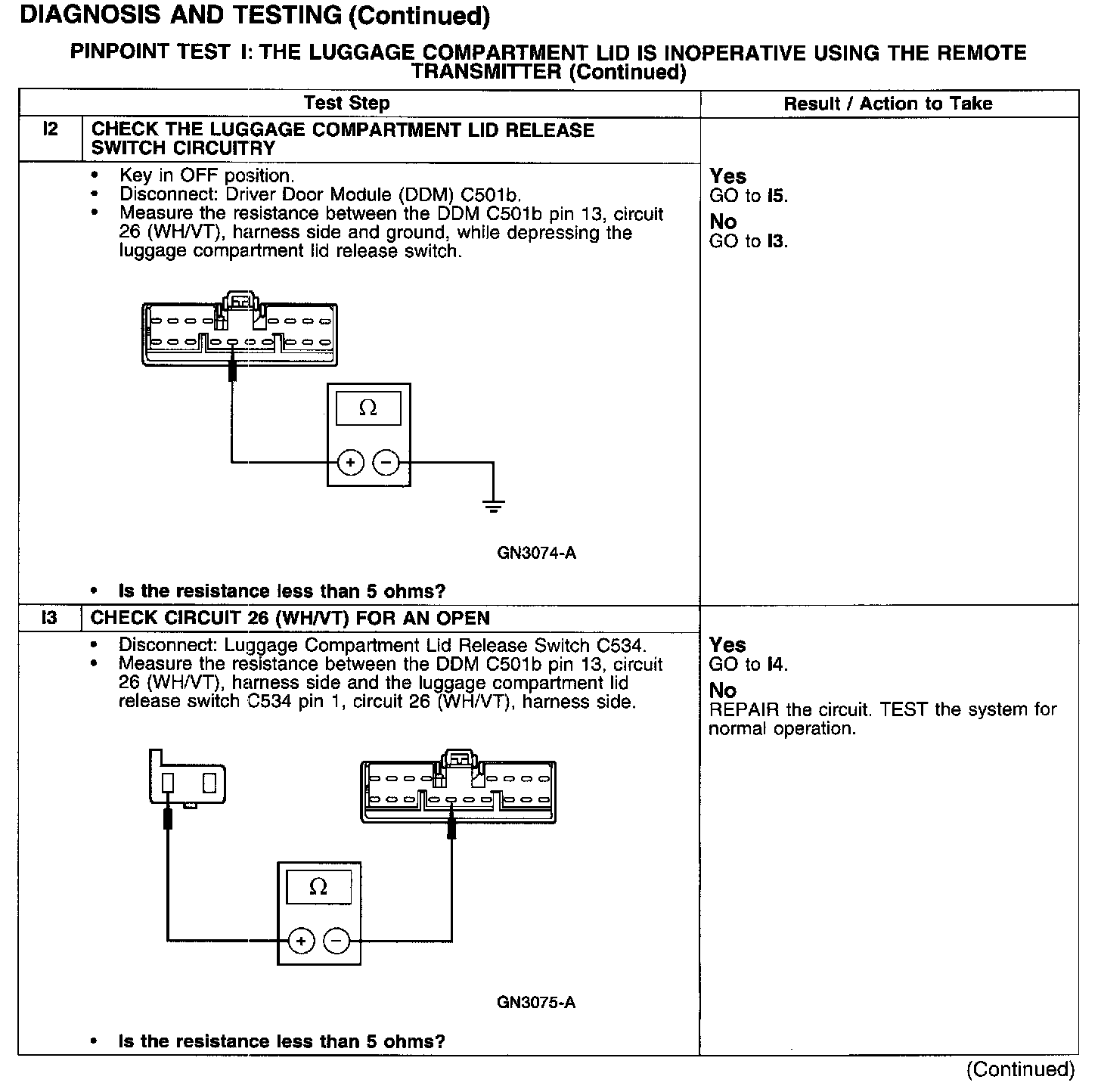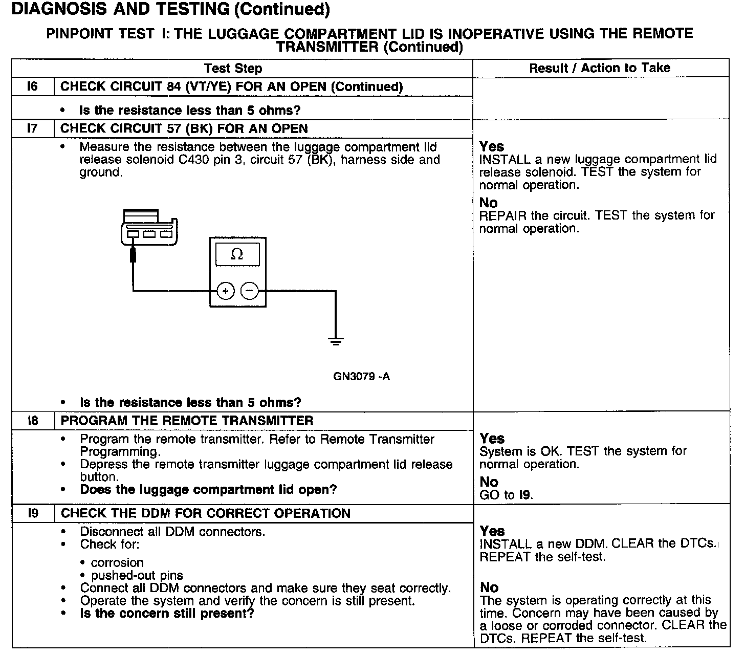 PINPOINT TEST I: THE LUGGAGE COMPARTMENT LID IS INOPERATIVE USING THE REMOTE TRANSMITTER