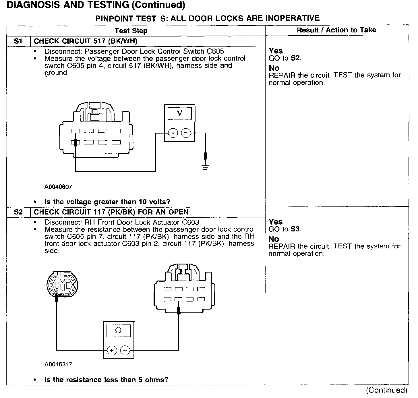 PINPOINT TEST S: ALL DOOR LOCKS ARE INOPERATIVE