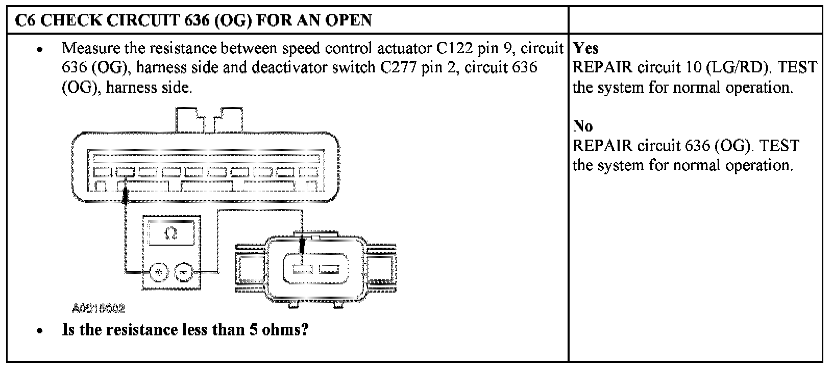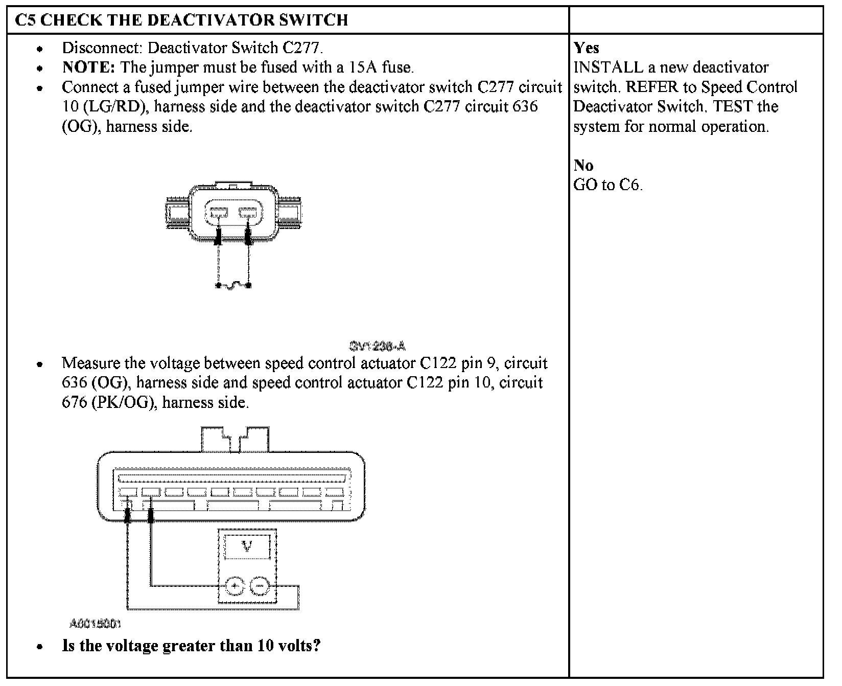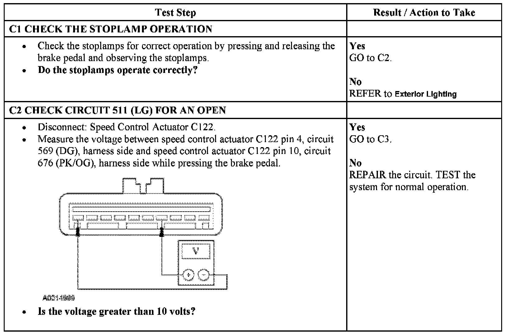 PINPOINT TEST C: THE SPEED CONTROL DOES NOT DISENGAGE WHEN THE BRAKES ARE APPLIED