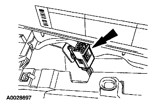 7. From under the driver seat, remove the restraint system diagnostic tool from the driver seat side air bag floor electrical connector.