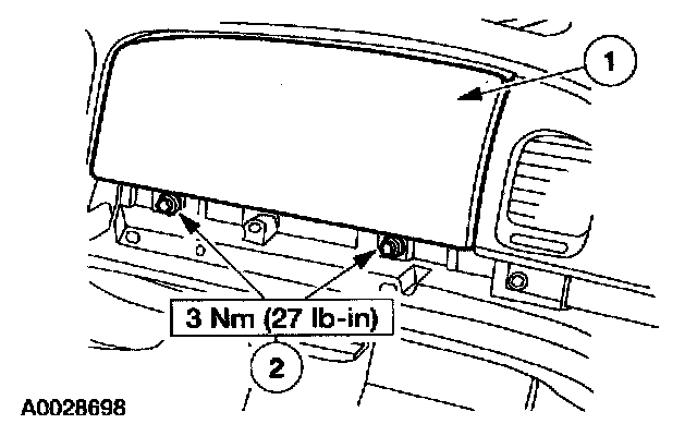 23. Through the glove compartment opening, install the passenger air bag module bolts.