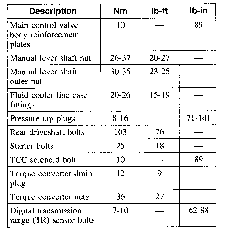 Torque Specifications