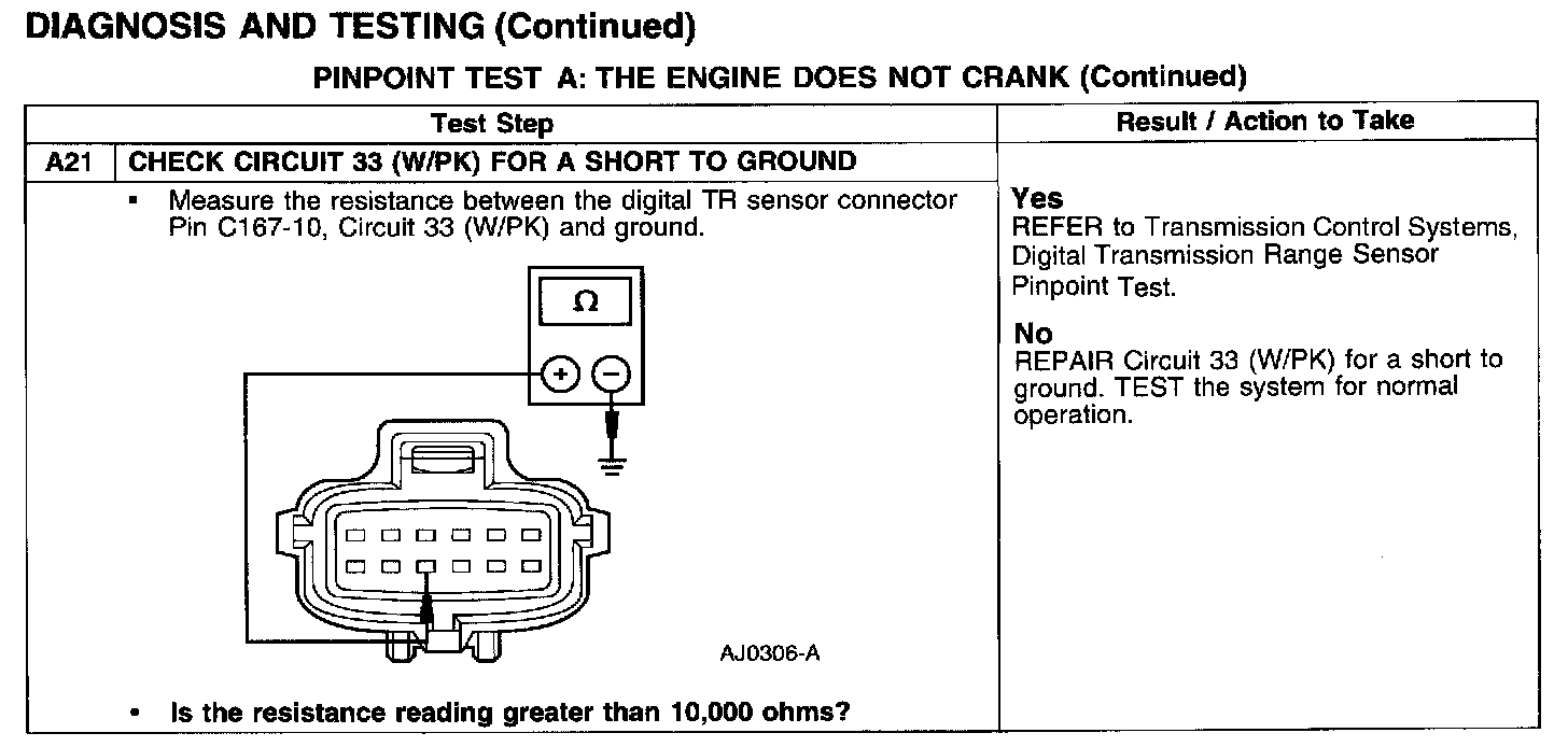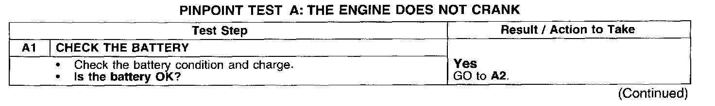 PINPOINT TEST A: THE ENGINE DOES NOT CRANK