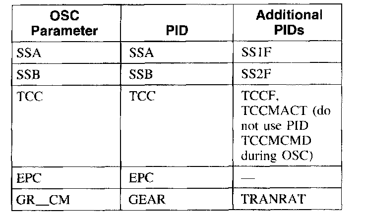 To confirm that the OSC value was sent by the scan tool and the EEC has accepted the OSC substitution, a corresponding PID for each OSC parameter must be monitored. Additional PIDs should be monitored to help the technician adequately diagnose the transmission.