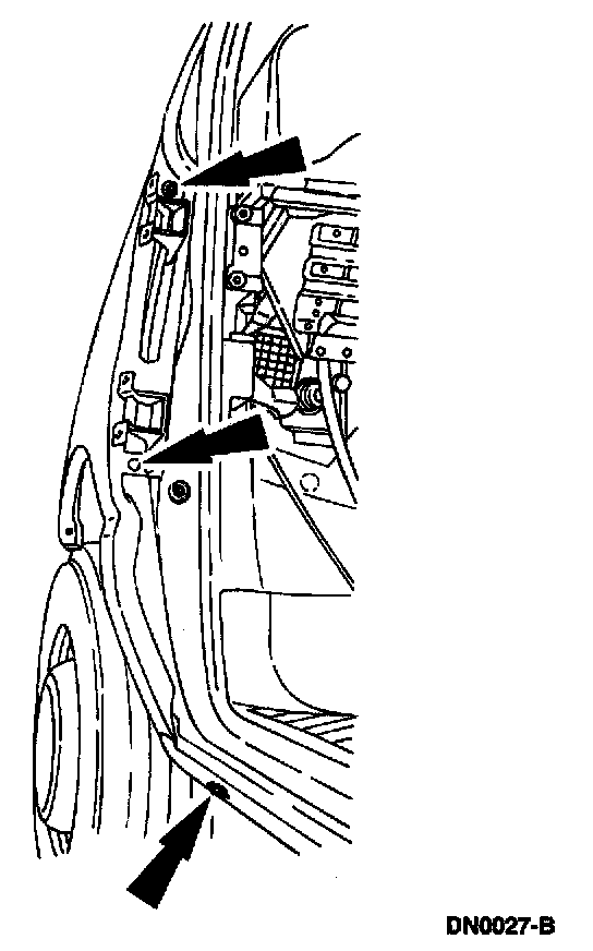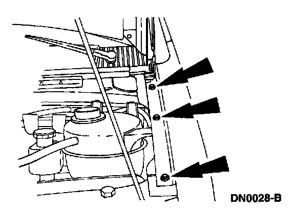 - Remove the front fender-to-fender upper apron retaining screws.