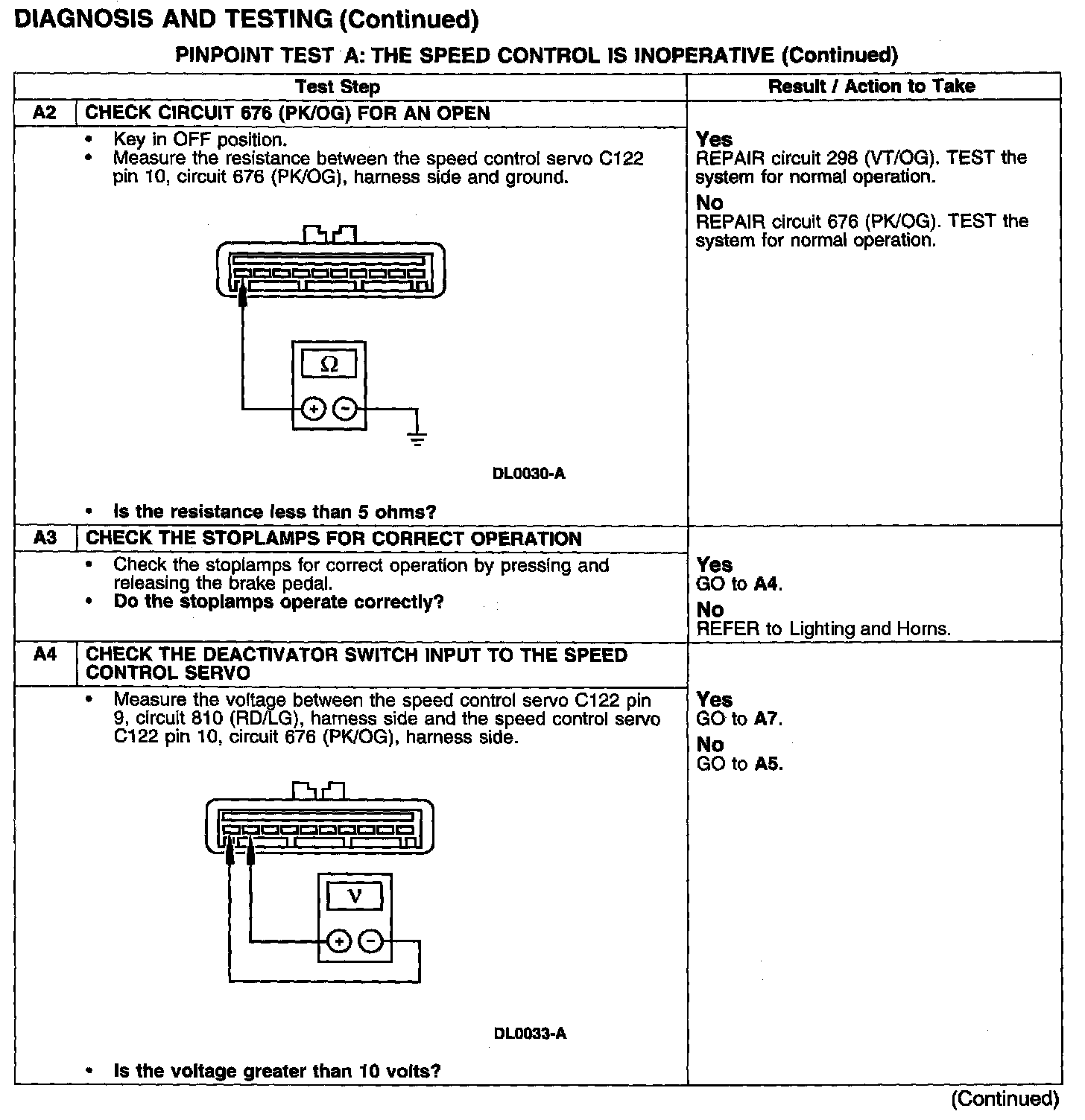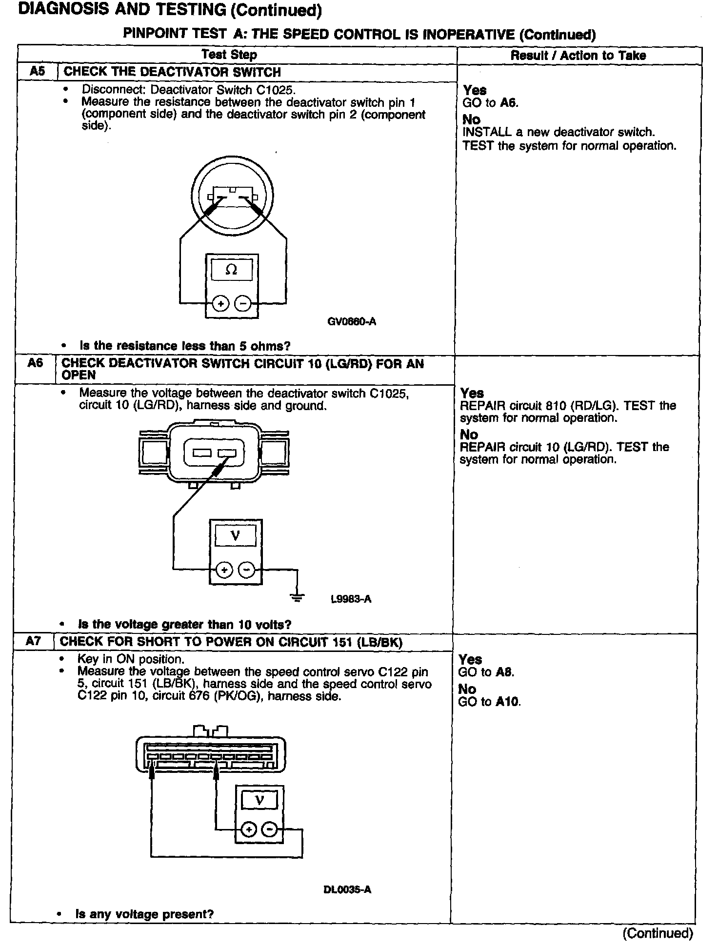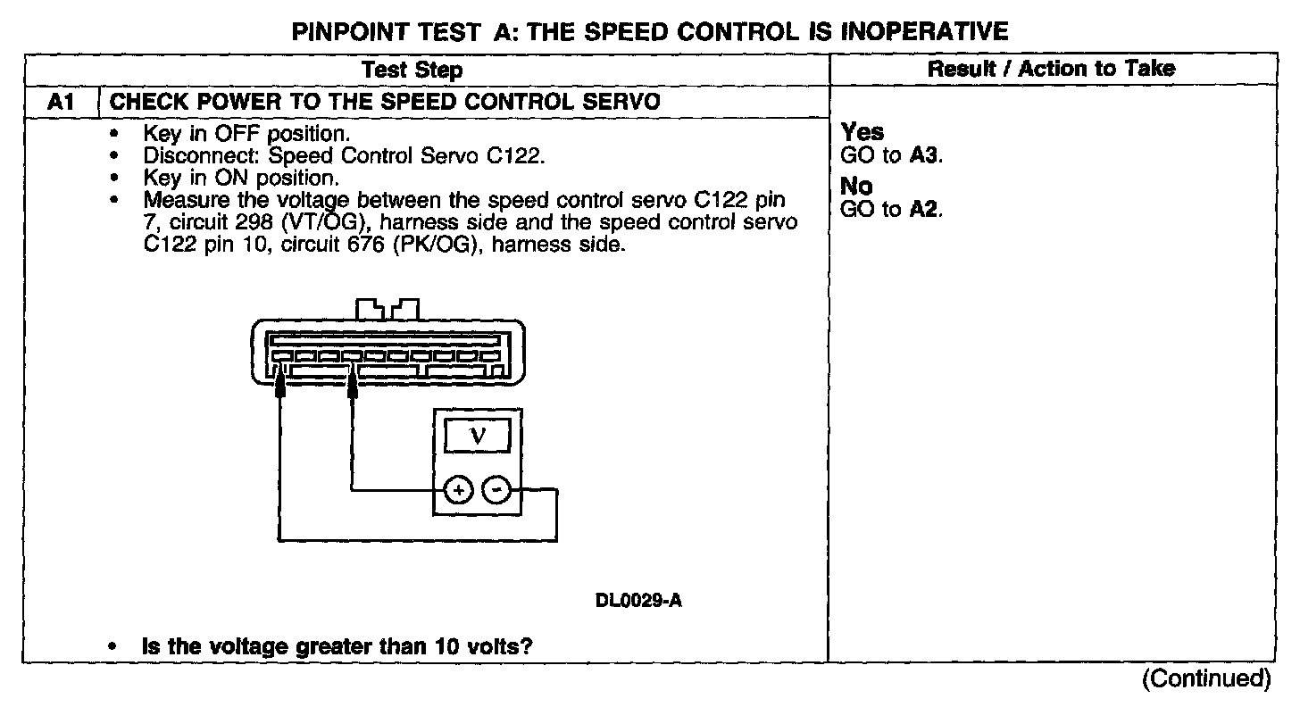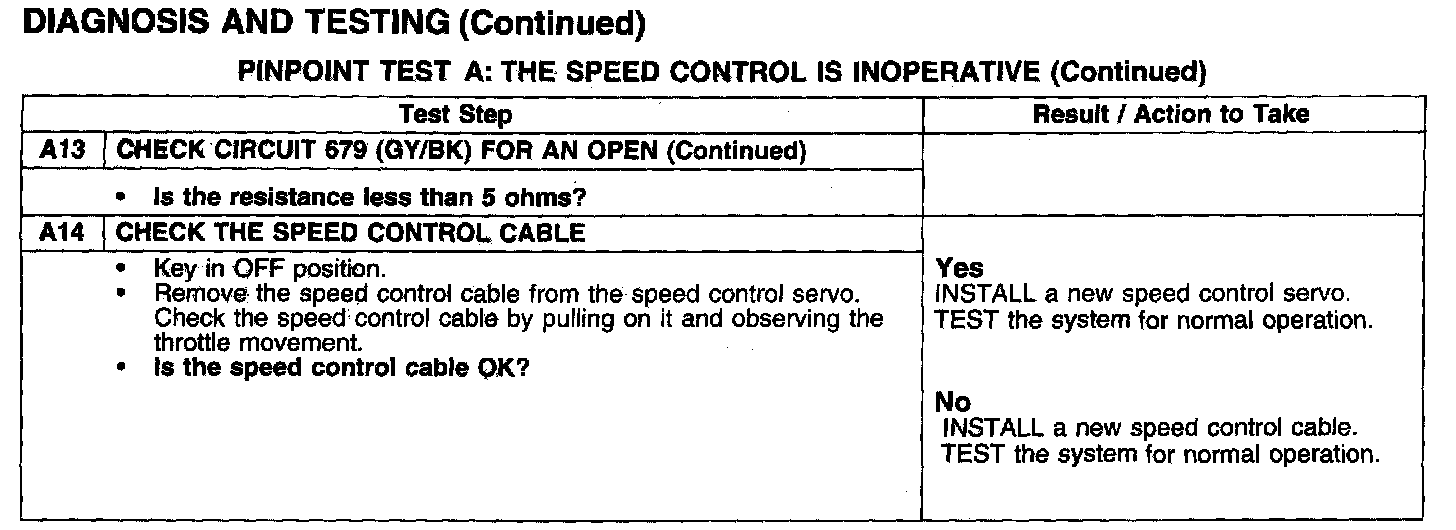 PINPOINT TEST A: THE SPEED CONTROL IS INOPERATIVE