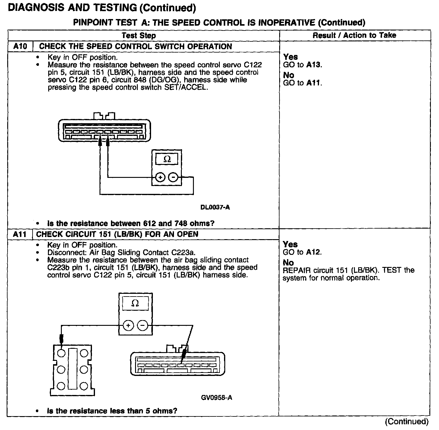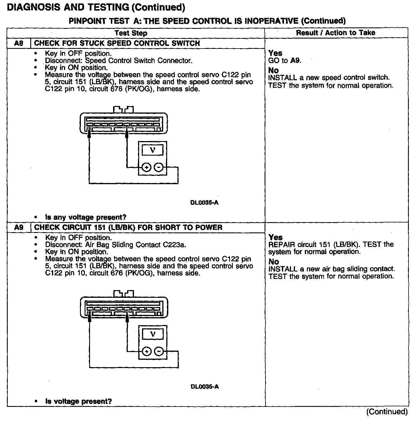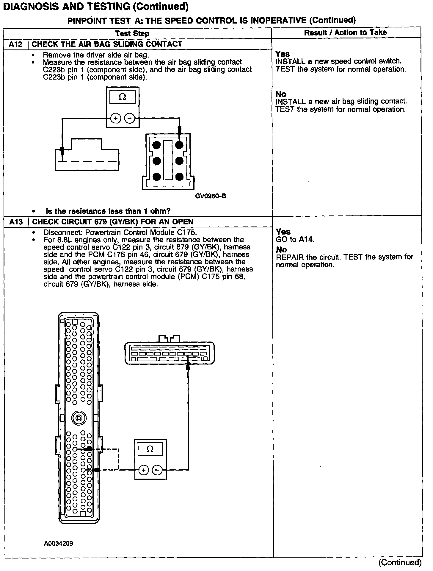 PINPOINT TEST A: THE SPEED CONTROL IS INOPERATIVE