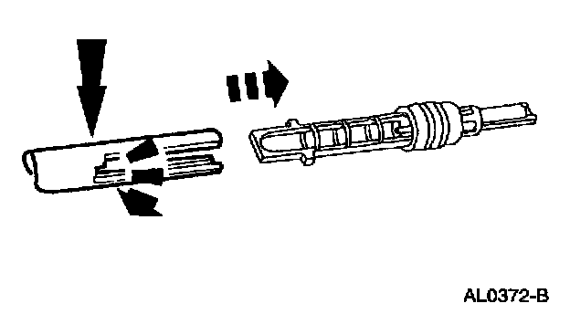 1. Lubricate and install the O-ring seals on the A/C evaporator core orifice.