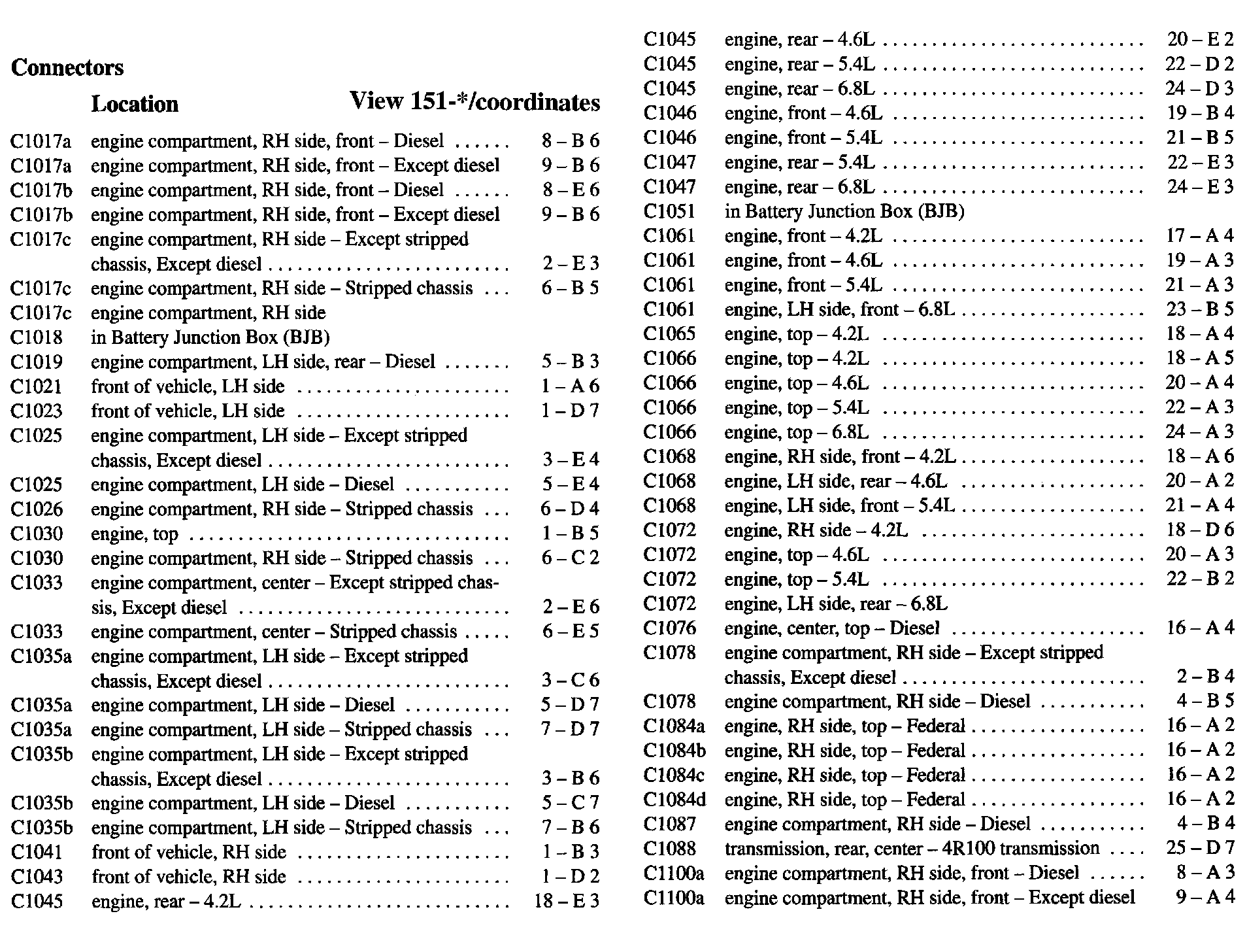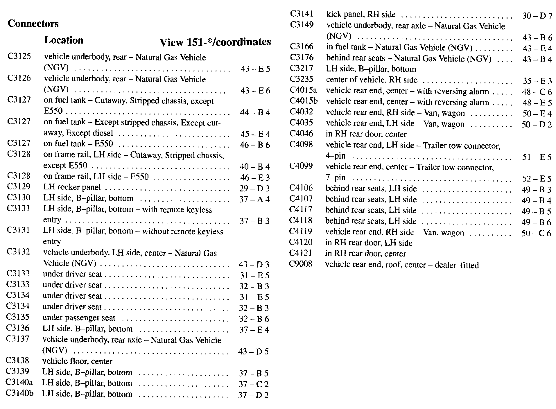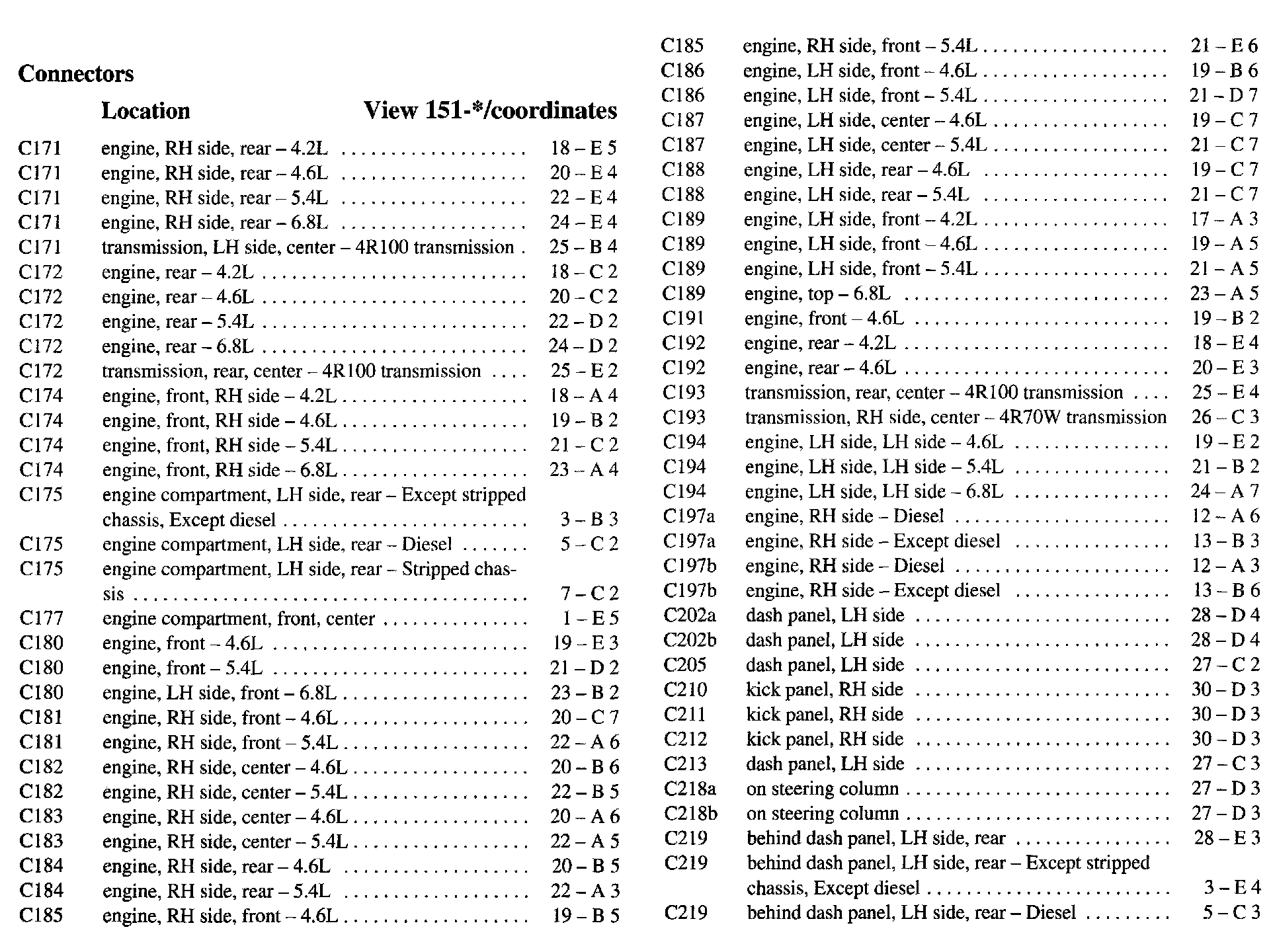 PLEASE NOTE: If a link on the Connector Location Index to a View is not provided, that means that the Connector and/or View in question does NOT apply to the vehicle model selected.
