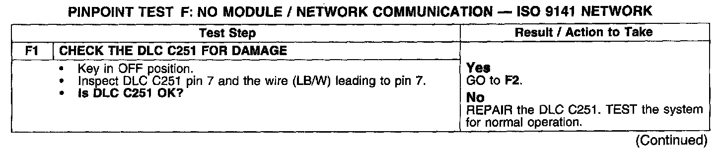 PINPOINT TEST F: NO MODULE/NETWORK COMMUNICATION - ISO 9141 NETWORK